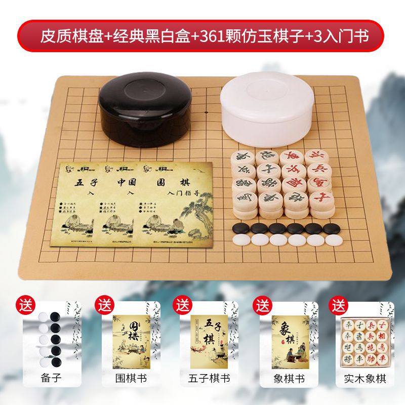 经典黑白盒-【皮革棋盘】-【老师推荐】361仿玉子+入门书套餐