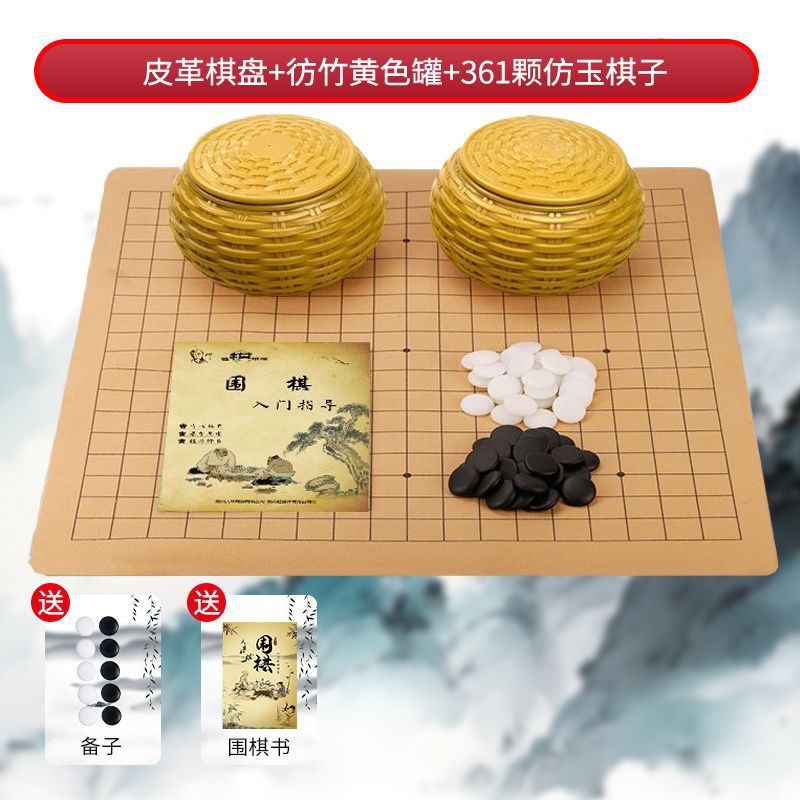 彷竹黄色罐-【皮革棋盘】-【老师推荐】361仿玉子+入门书套餐