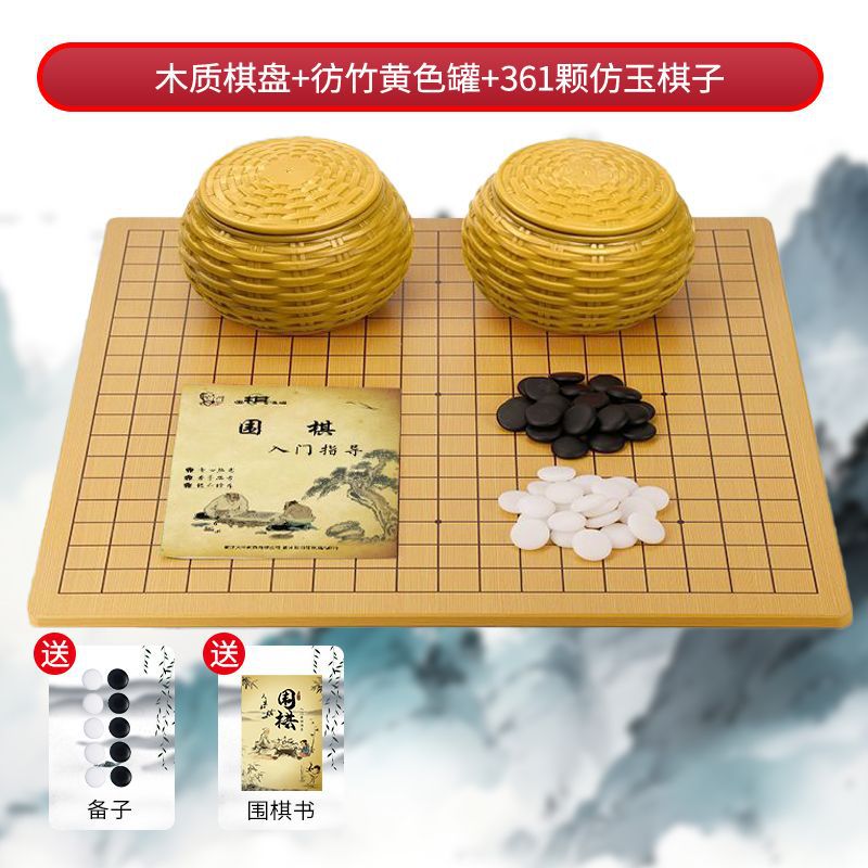 彷竹黄色罐-【木质棋盘】-【老师推荐】361仿玉子+入门书套餐