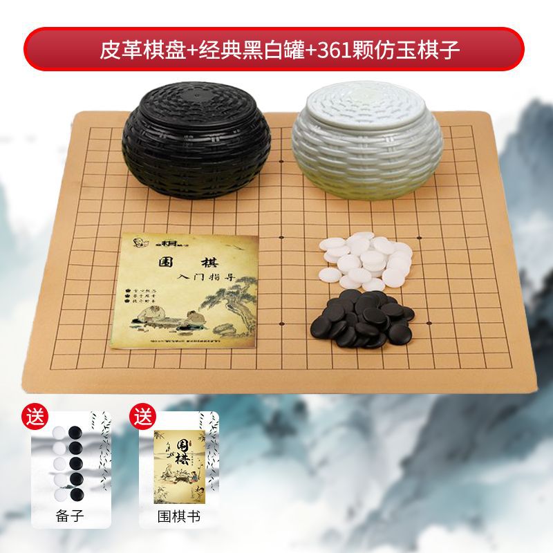 经典黑白罐-【皮革棋盘】-【老师推荐】361仿玉子+入门书套餐