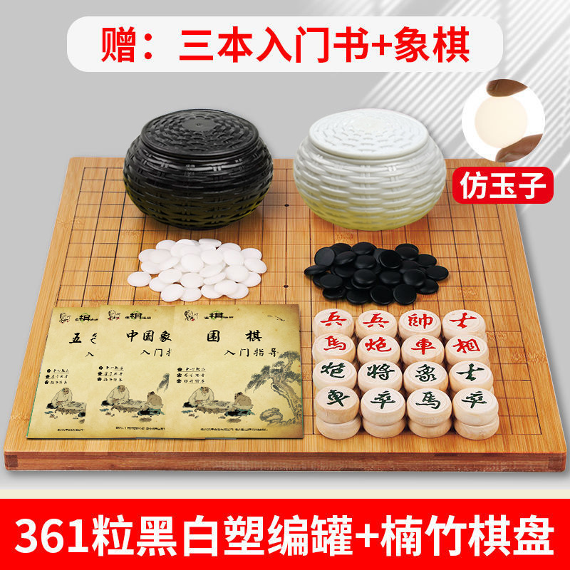 - 黑白塑编罐+361粒仿玉子+楠竹棋盘+象棋+3书