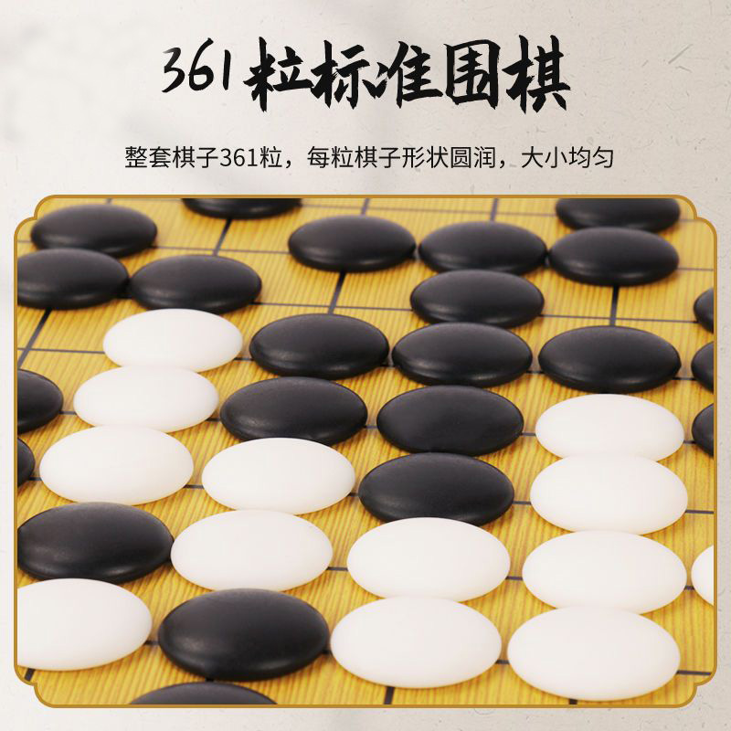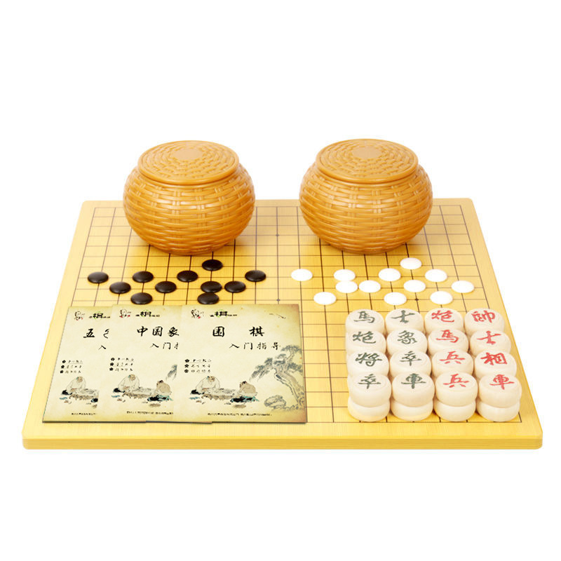 - 黑白塑编罐+361粒仿玉子+1.5木质棋盘+象棋+3书