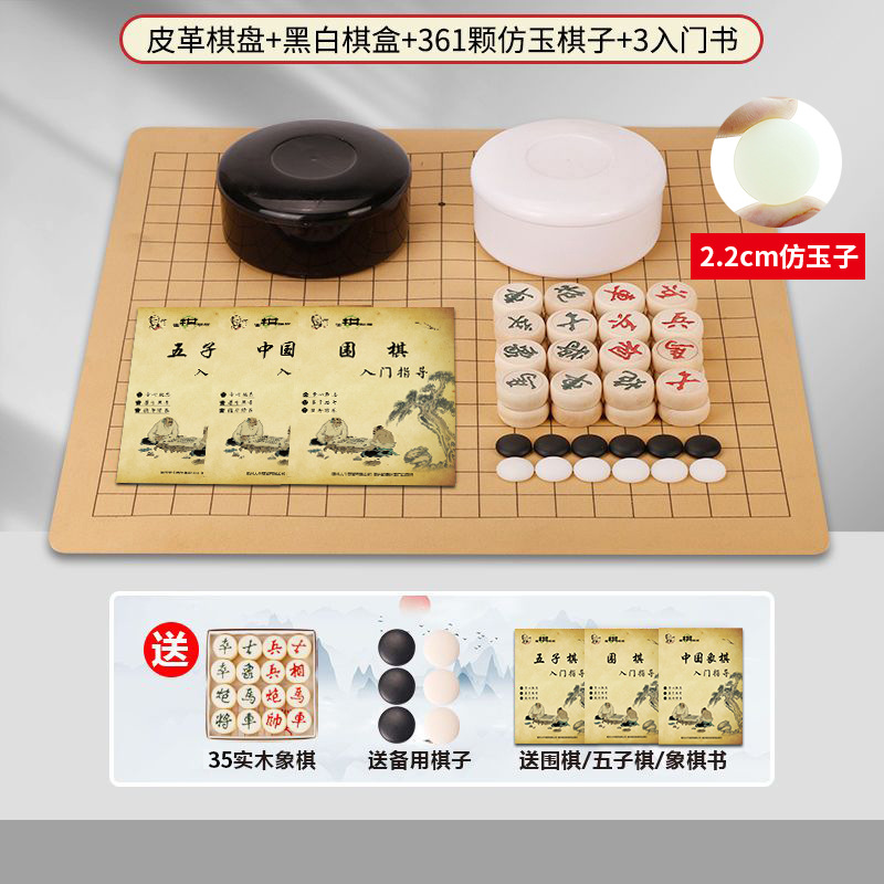 - 黑白盒+361粒仿玉子+皮革棋盘+象棋+3书