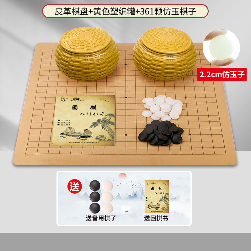 - 黄色塑编罐+361粒仿玉子+皮革棋盘+围棋书