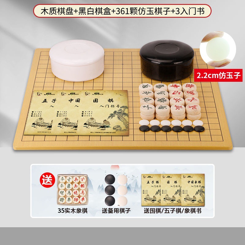 - 黑白盒+361粒仿玉子+楠竹棋盘+象棋+3书