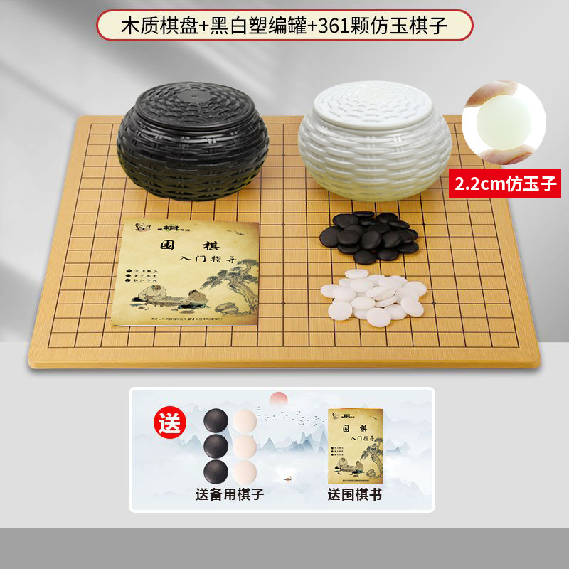 - 黑白塑编罐+361粒仿玉子+木质棋盘+围棋书