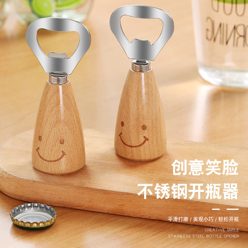 木柄笑脸不锈钢啤酒开瓶器省力启瓶器