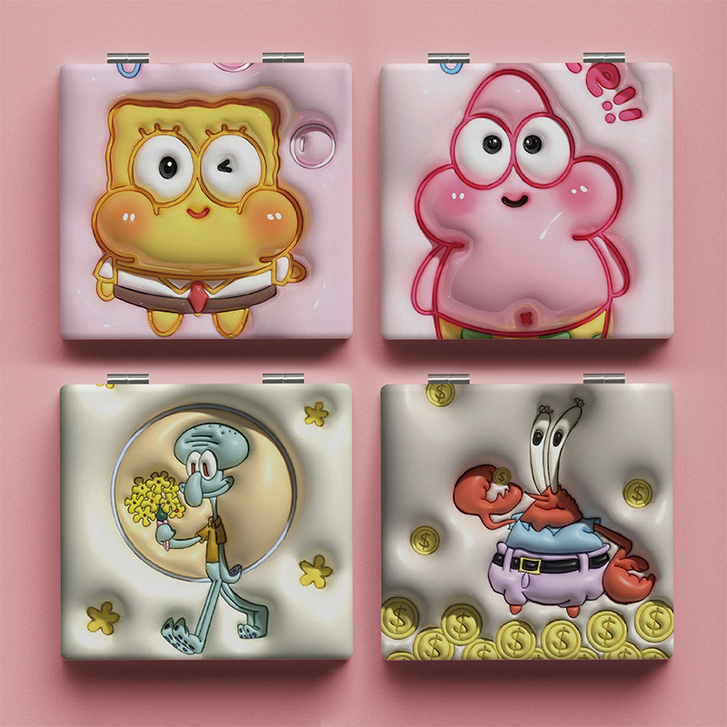 海绵宝宝派大星随身镜学生便携折叠双面图案小镜子新款手拿补妆镜