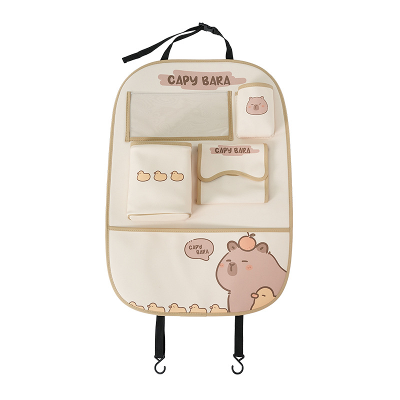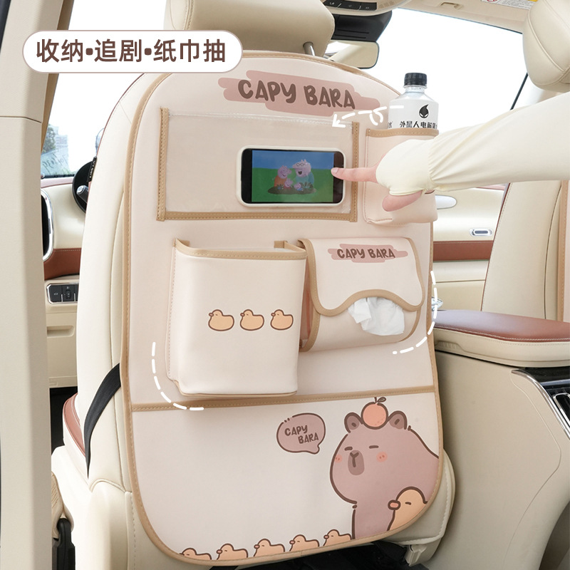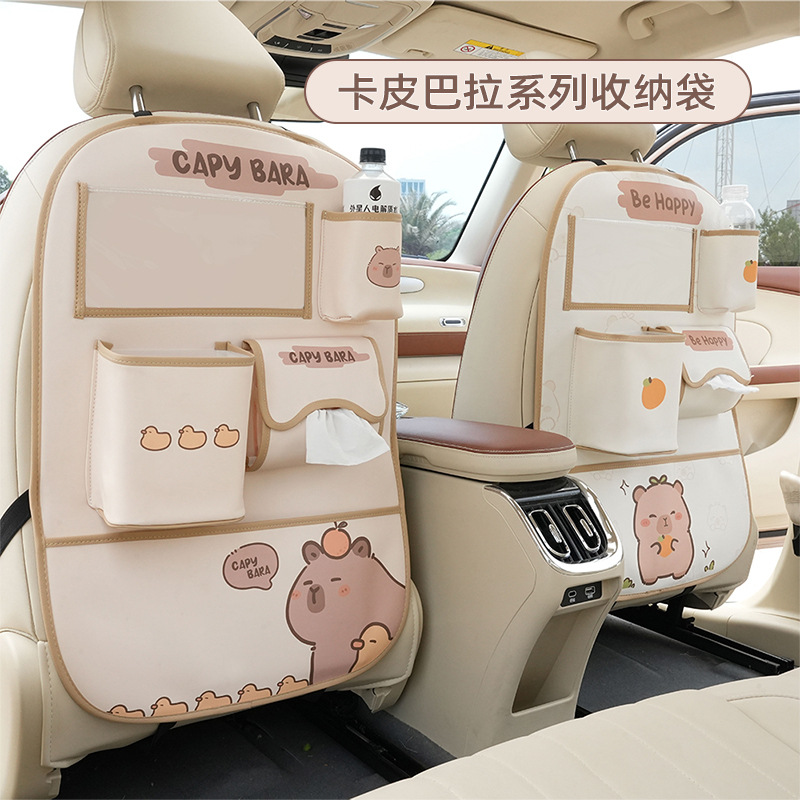 可爱卡皮巴拉车载垃圾桶 皮革耐脏耐磨车用收纳盒