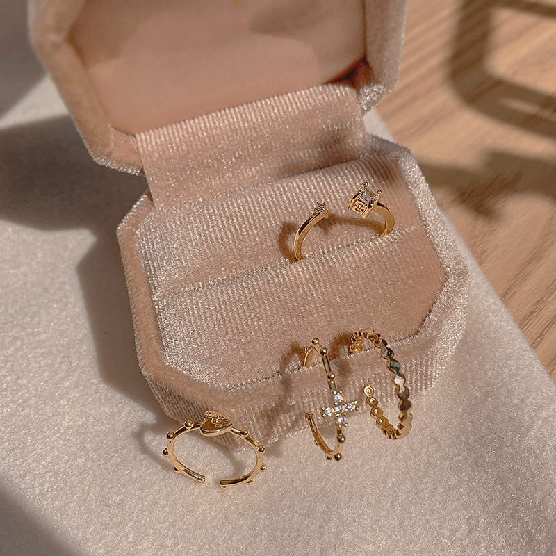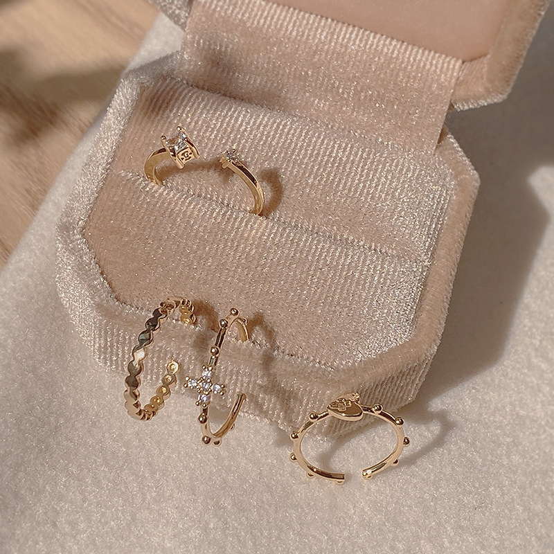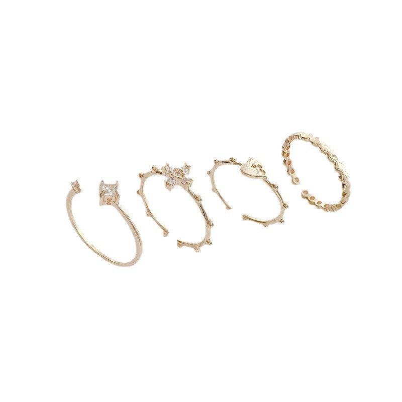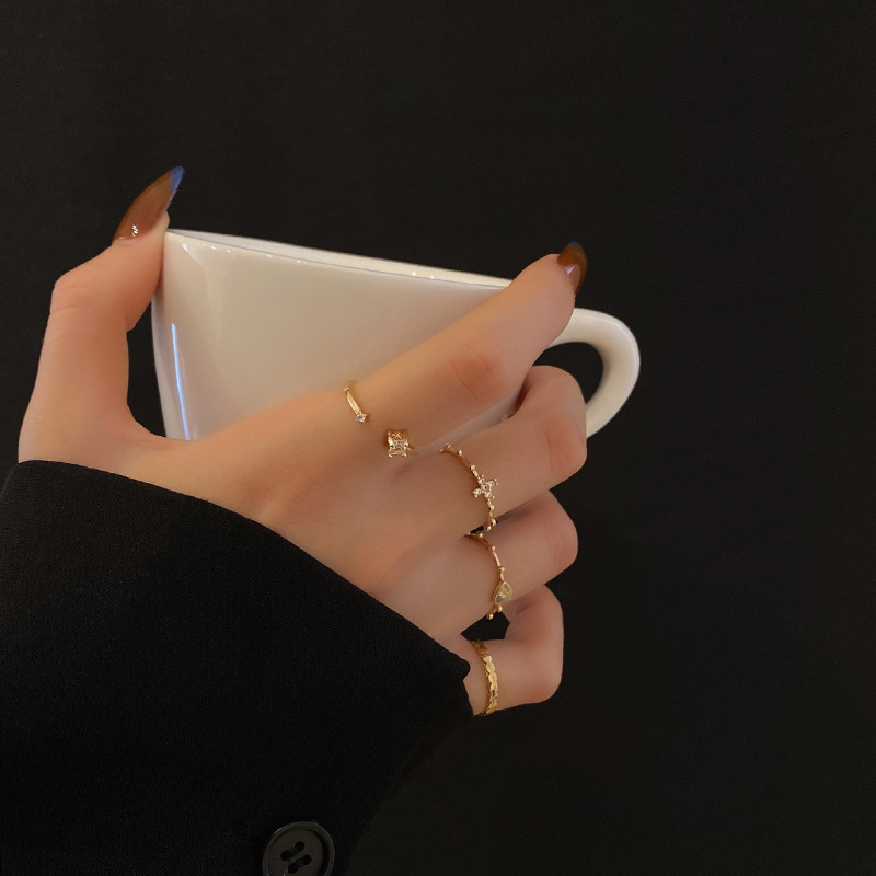 冷淡风戒指四只装套装组合小众高级感开口韩国金属指环女食指戒潮