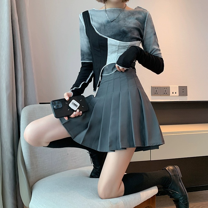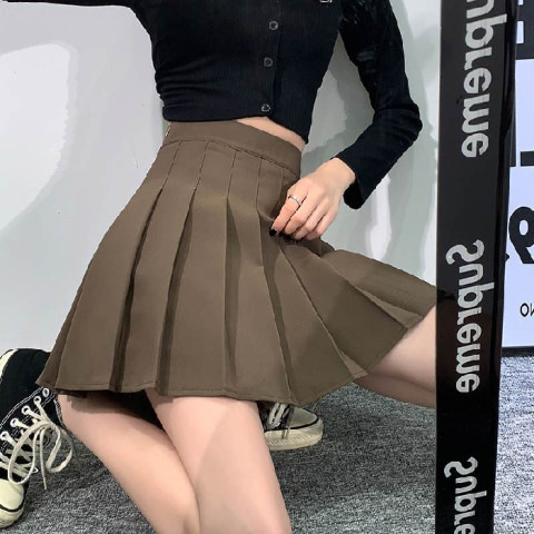 黑色百褶裙女春秋冬季高腰显瘦