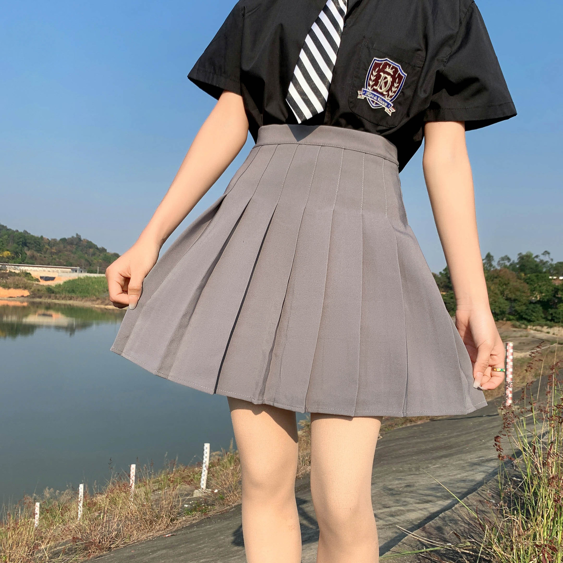 白色jk百褶裙春秋季学院风高腰a字裙显瘦百搭半身裙女灰色短裙子