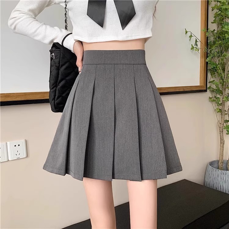 灰色百褶裙女防走光a字裙学院风JK短裙春秋新款西装半身裙
