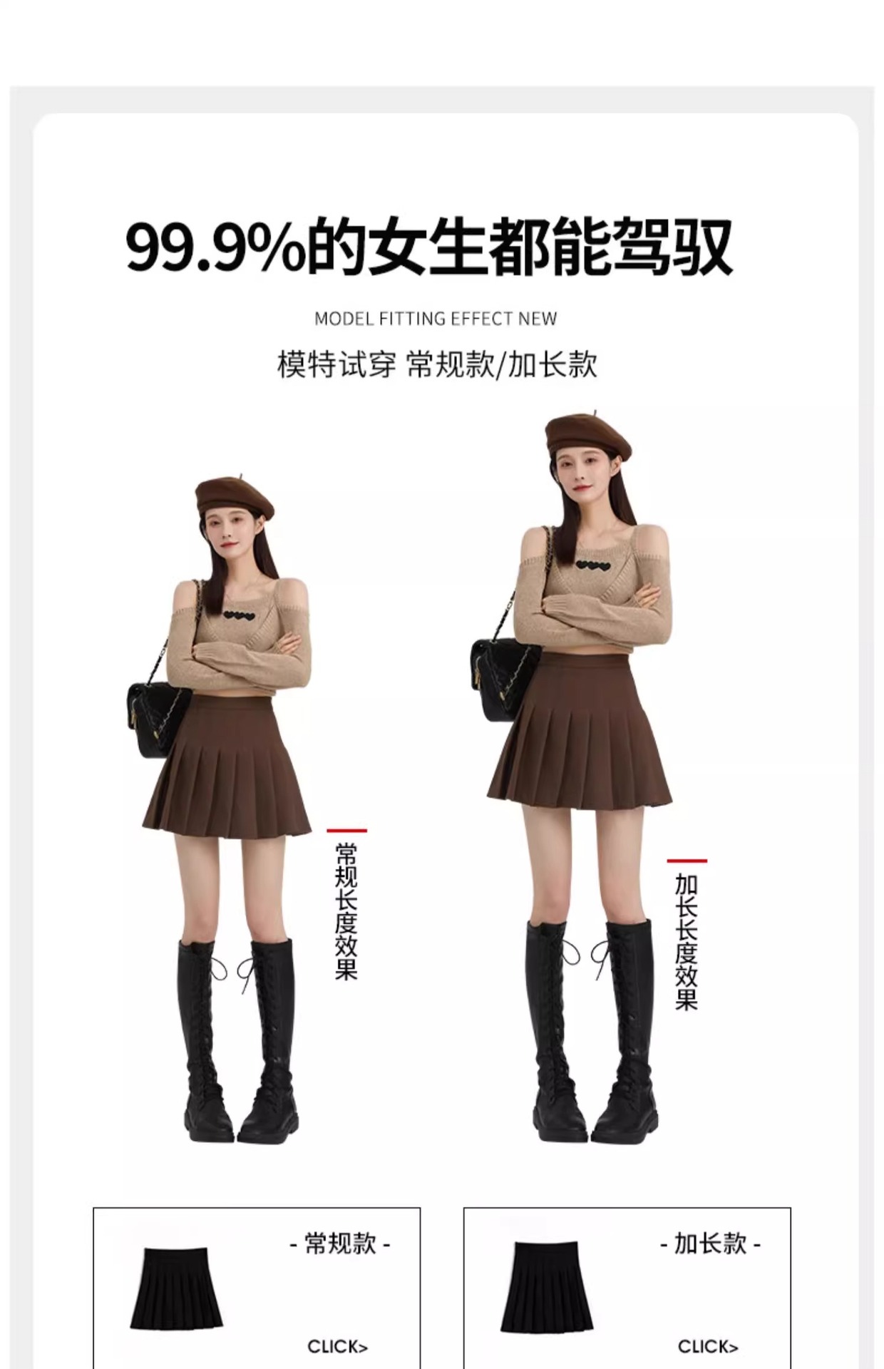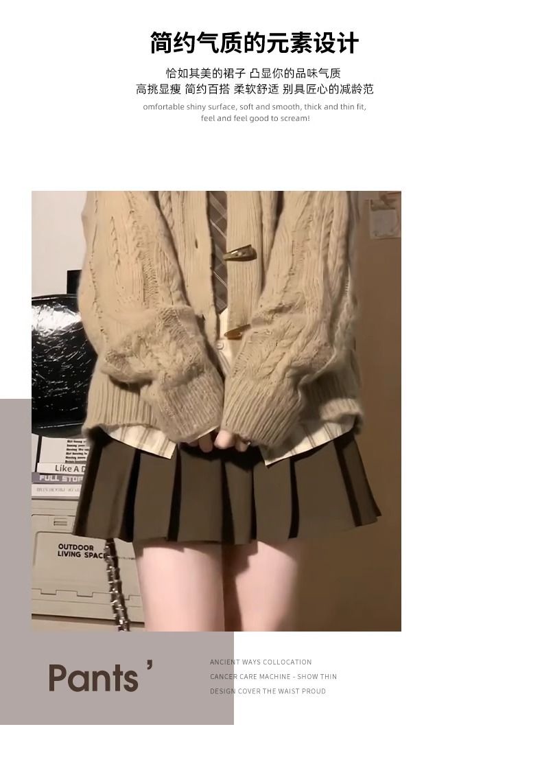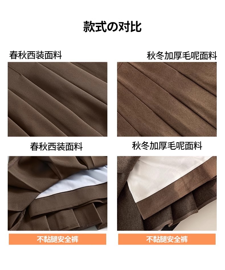 卡其色百褶裙女秋冬新款高腰显瘦毛呢jk短裙