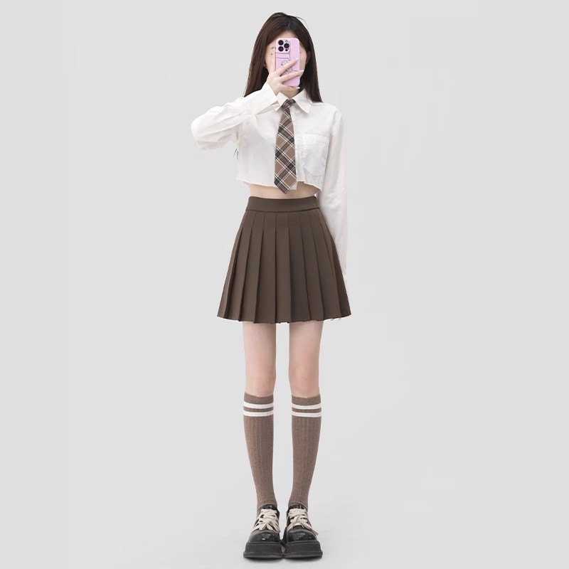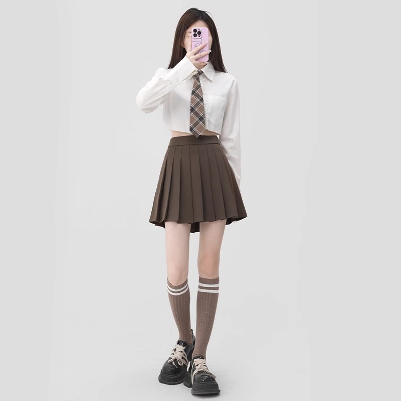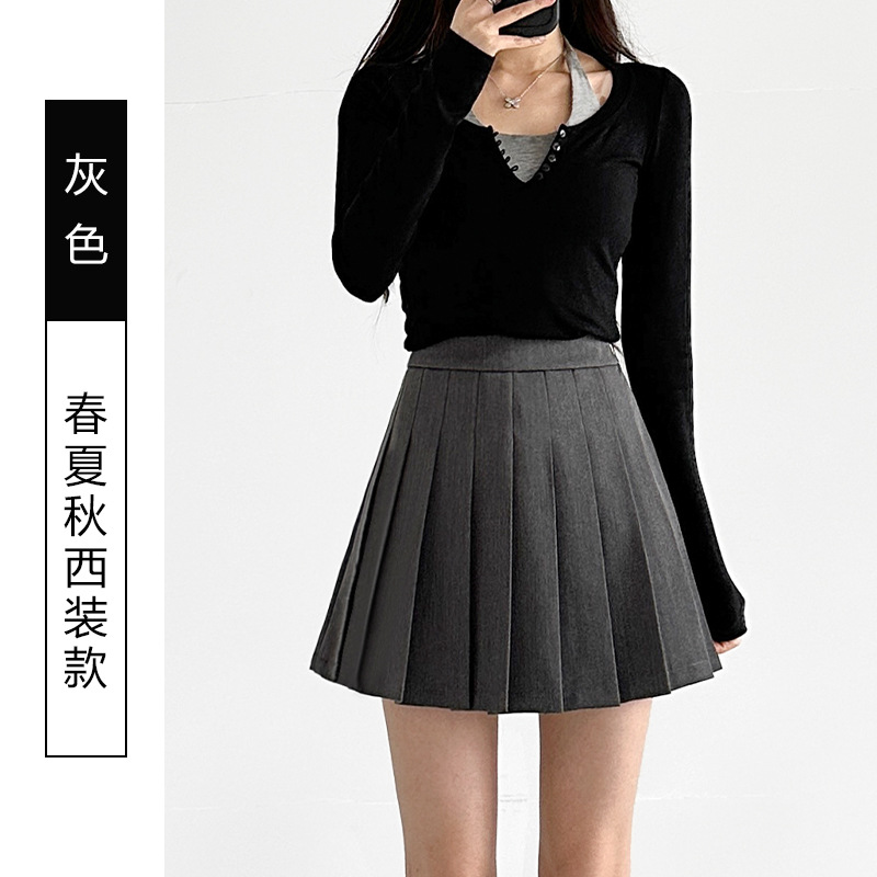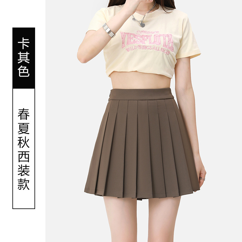 卡其色百褶裙女春夏季小个子学院风jk气质短裙