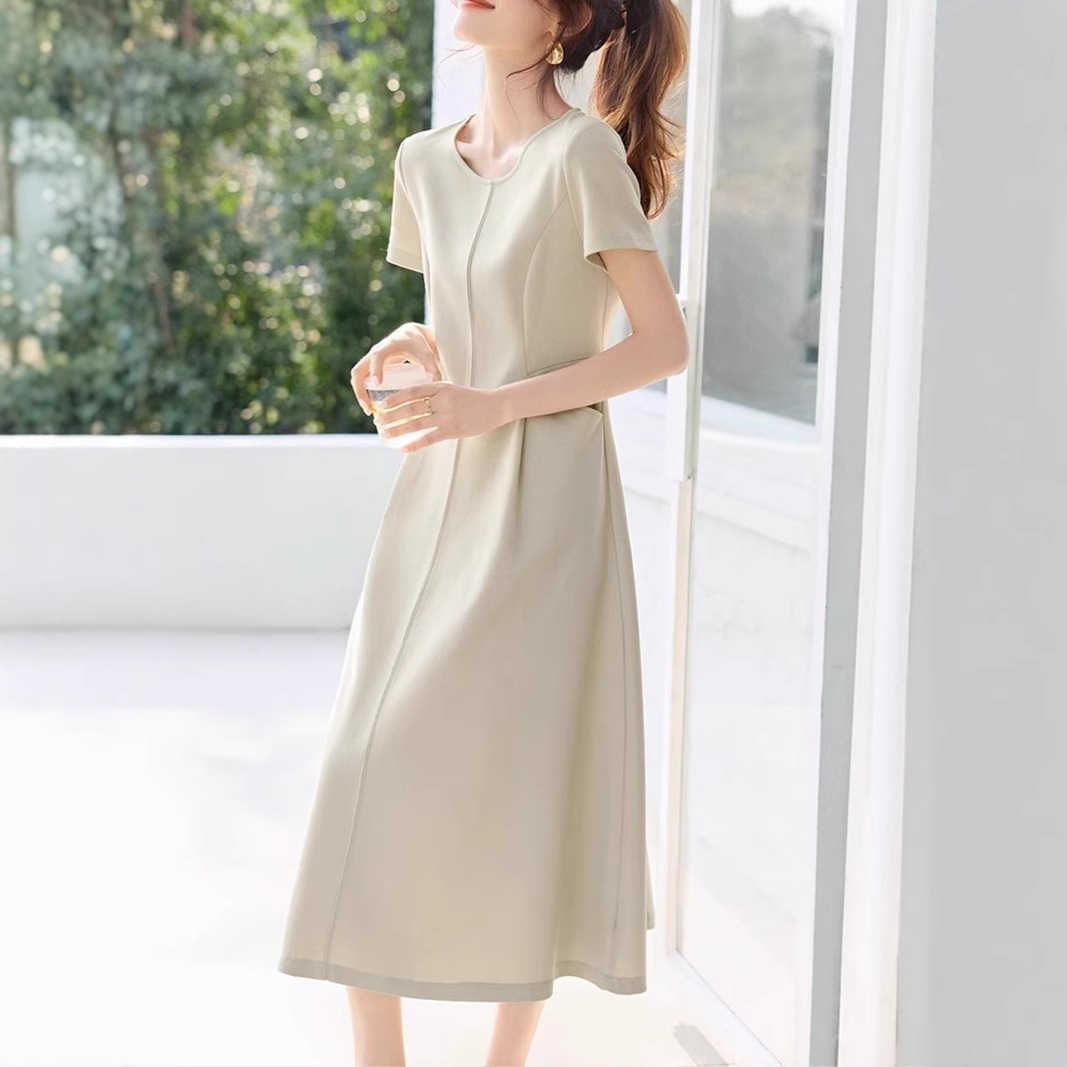 气质休闲白月光腰部打褶显瘦连衣裙2025女夏季新款高级质感连衣裙