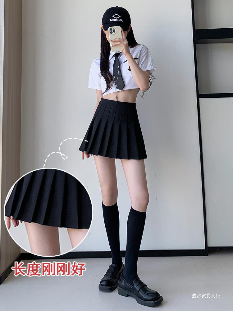 黑色百褶裙女秋冬季新款小个子a字半身裙西装高腰显瘦jk短裙