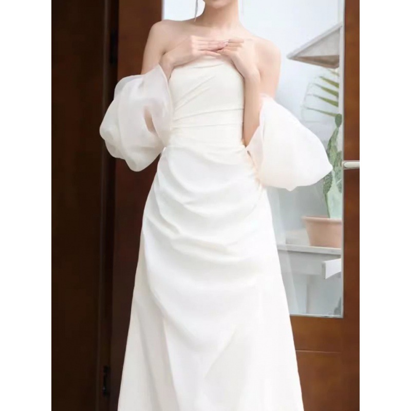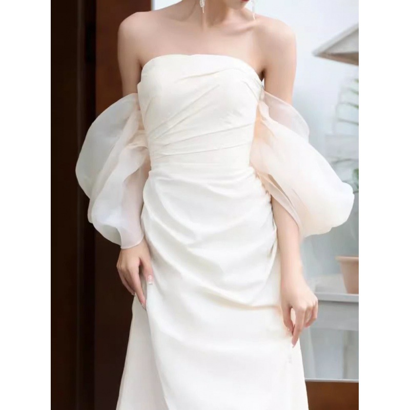 法式轻婚纱出门新娘外景旅拍小礼服轻奢小众高端迎宾纱敬酒连衣裙