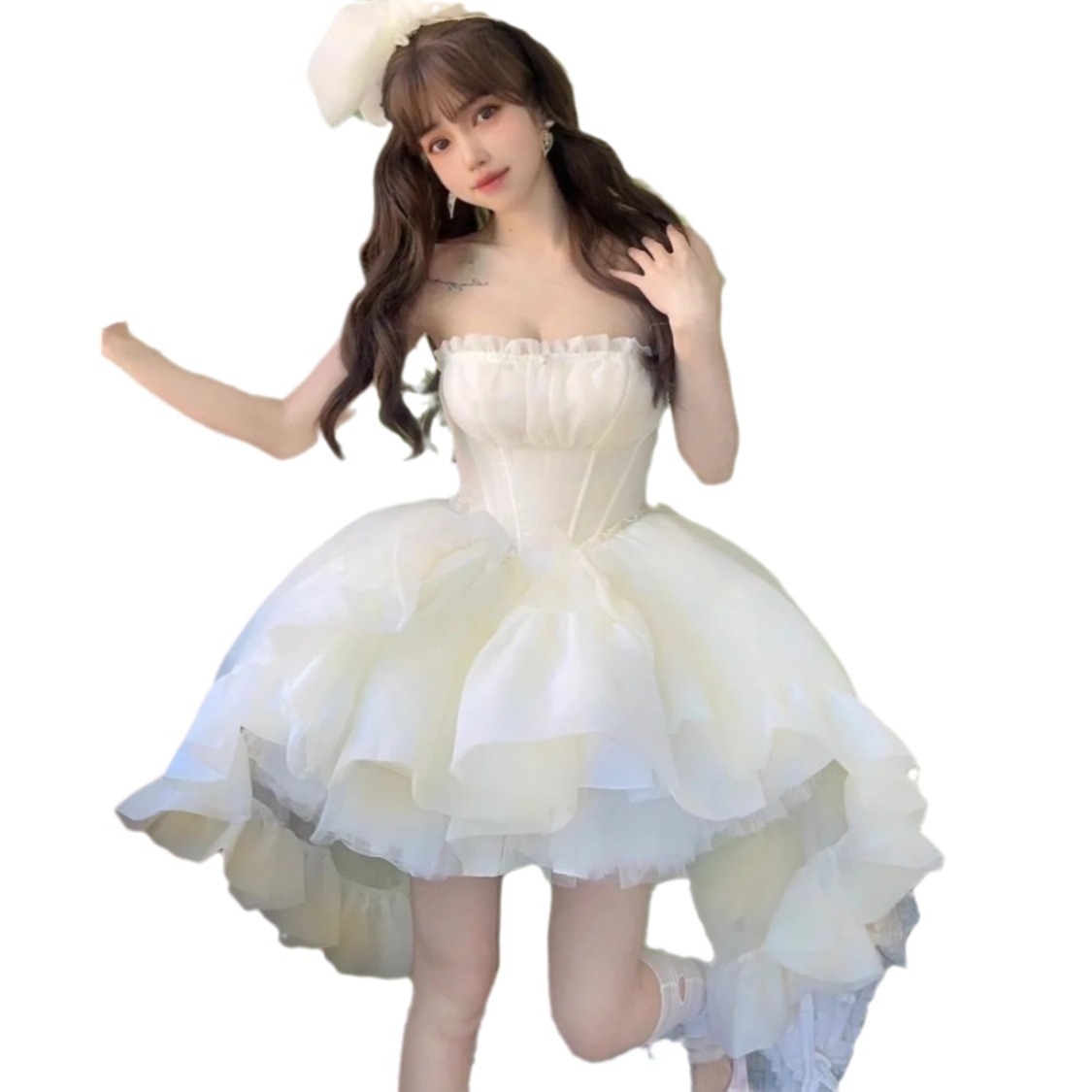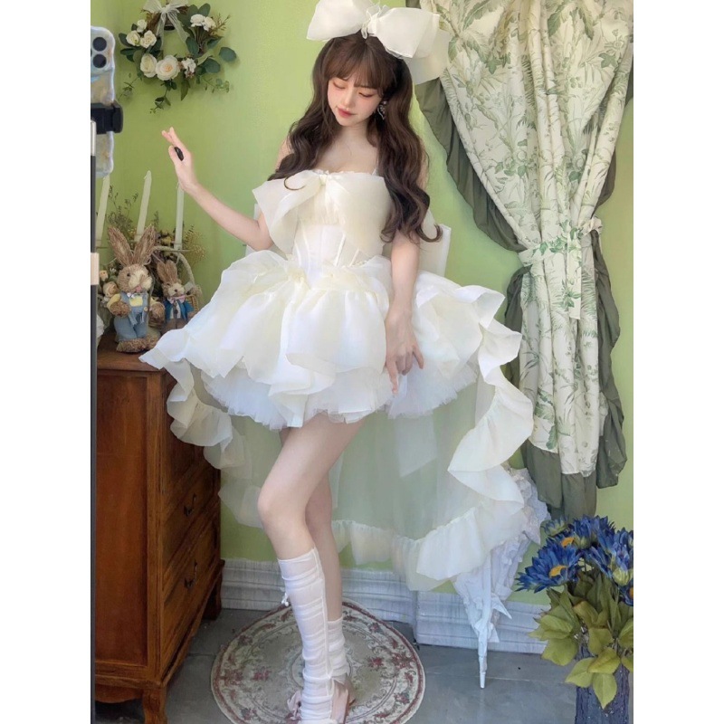 高定在逃公主法式蓬蓬裙生日礼服仙女甜美拖尾公主裙前短后长裙仙