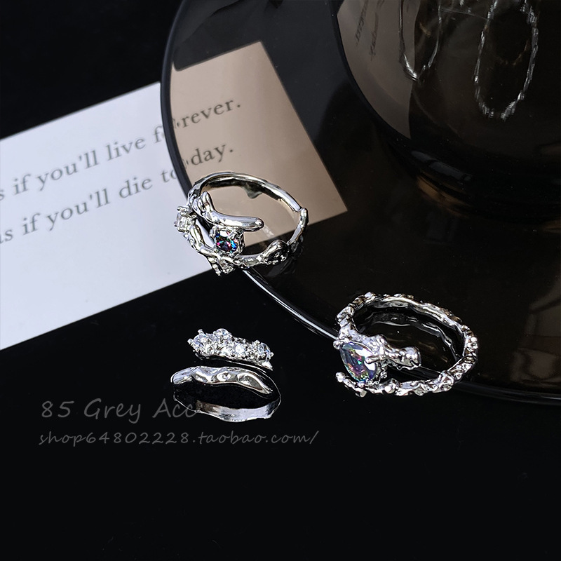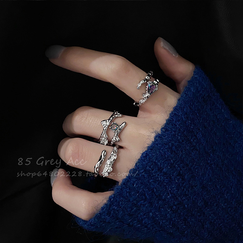 韩版不规则三件套戒指女ins风潮小众设计高级感渐变宝石食不掉色