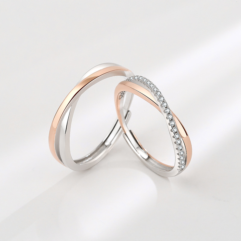 莫比乌斯情侣戒指女S925纯银小众设计交叉开口对戒轻奢高级感指环