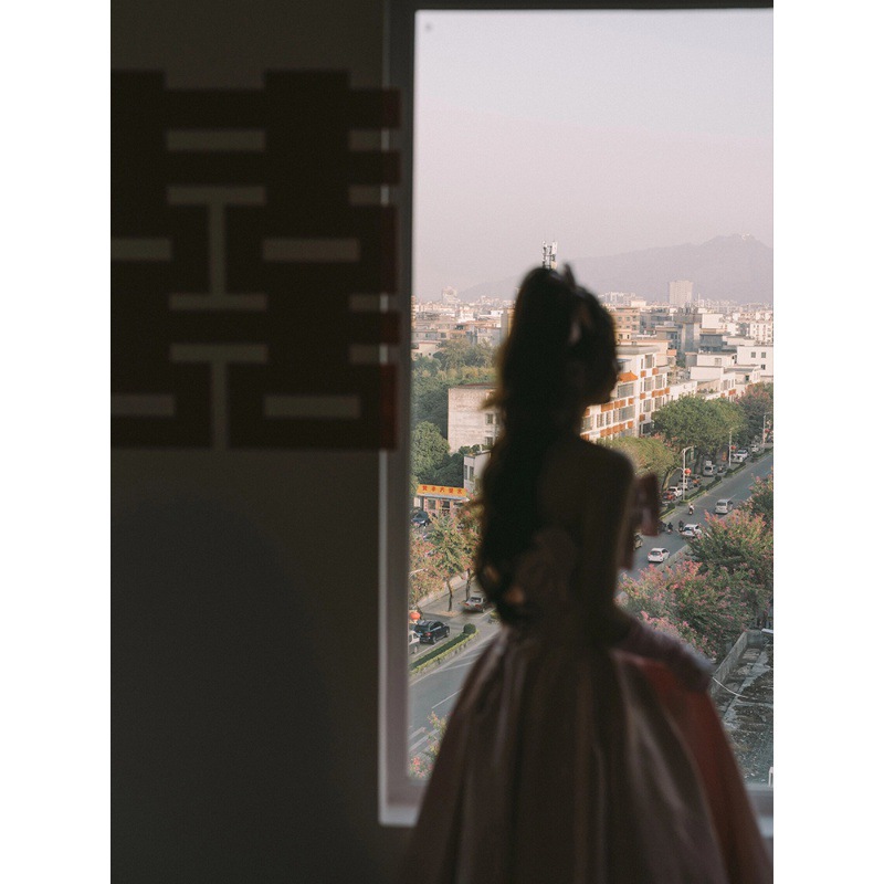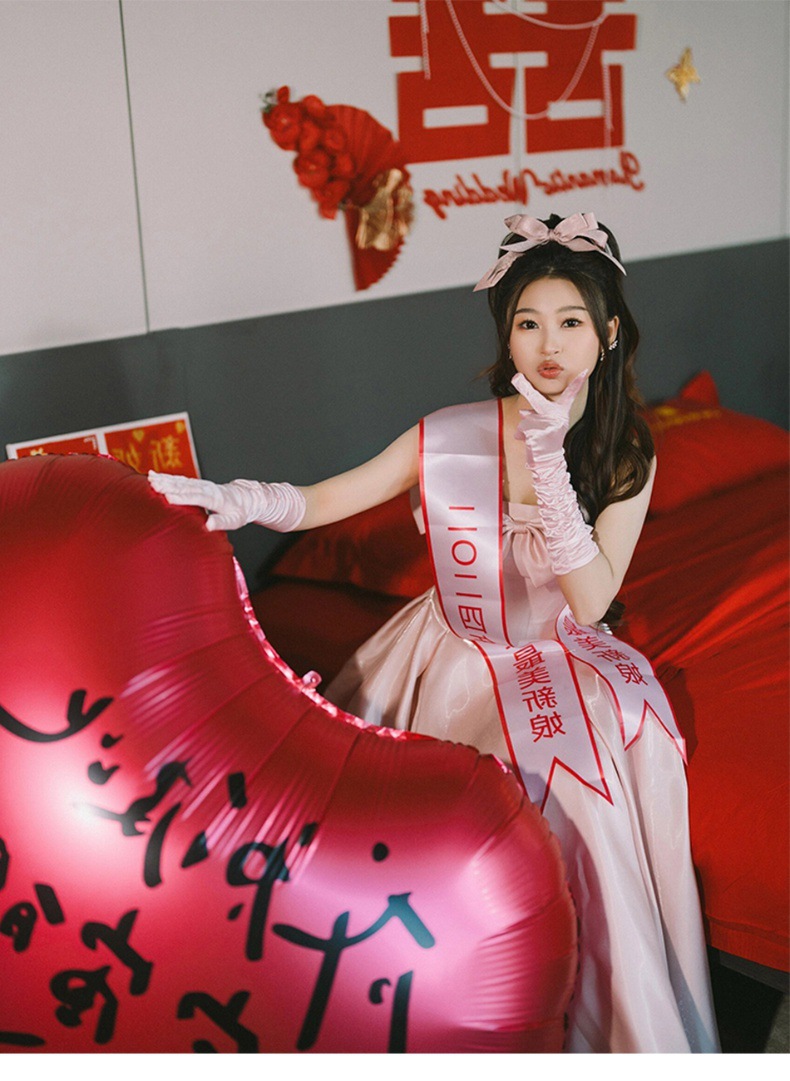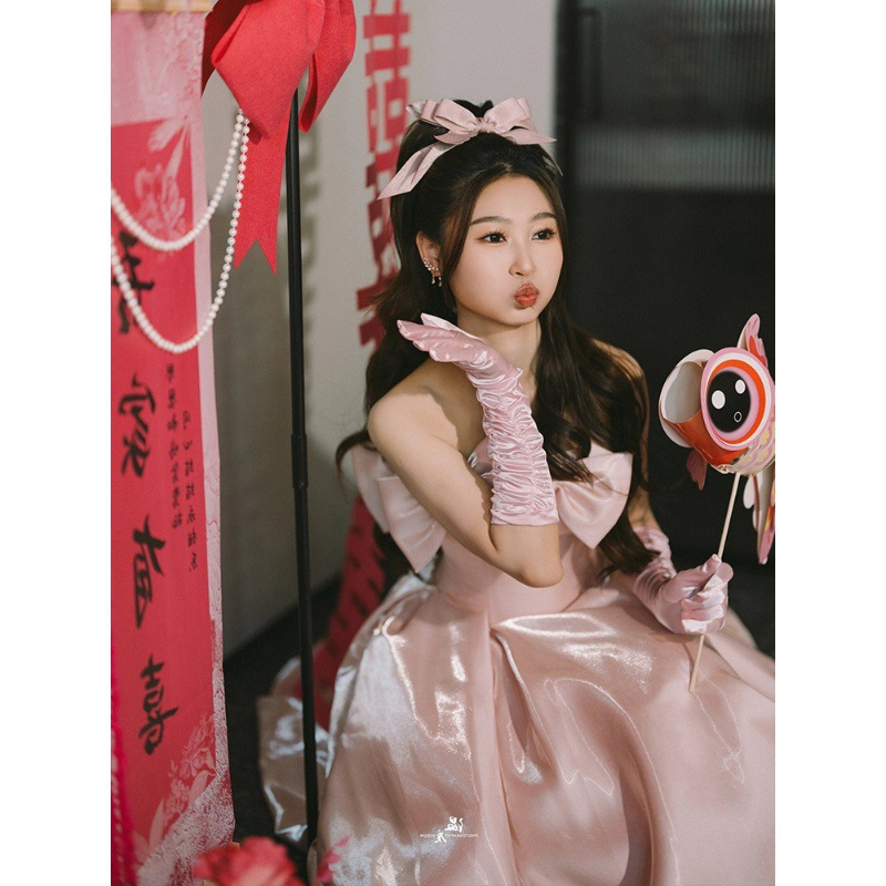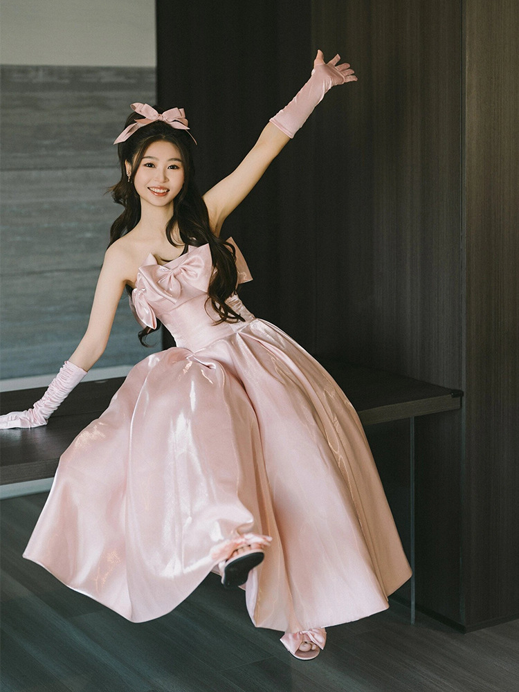 晚礼服轻奢小众生日宴会晨袍新娘订婚出阁迎宾敬酒服粉色抹胸长裙