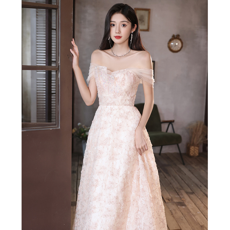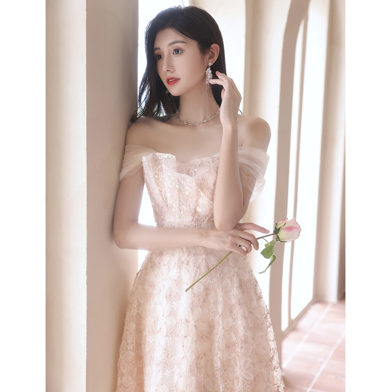 晚礼服女高级感主持人成人礼法式小众艺考新款一字肩敬酒服新娘