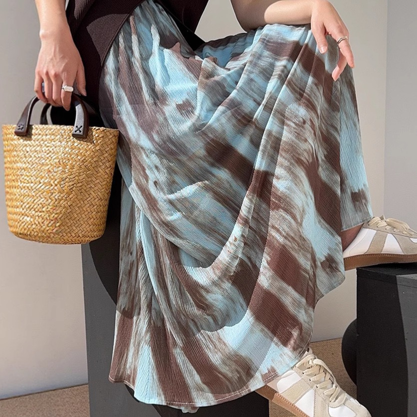 扎染半身裙女2025年夏季新款时尚高级初夏穿搭a字长款小众裙子