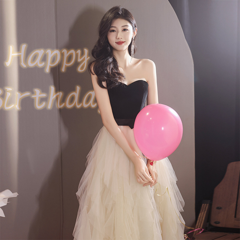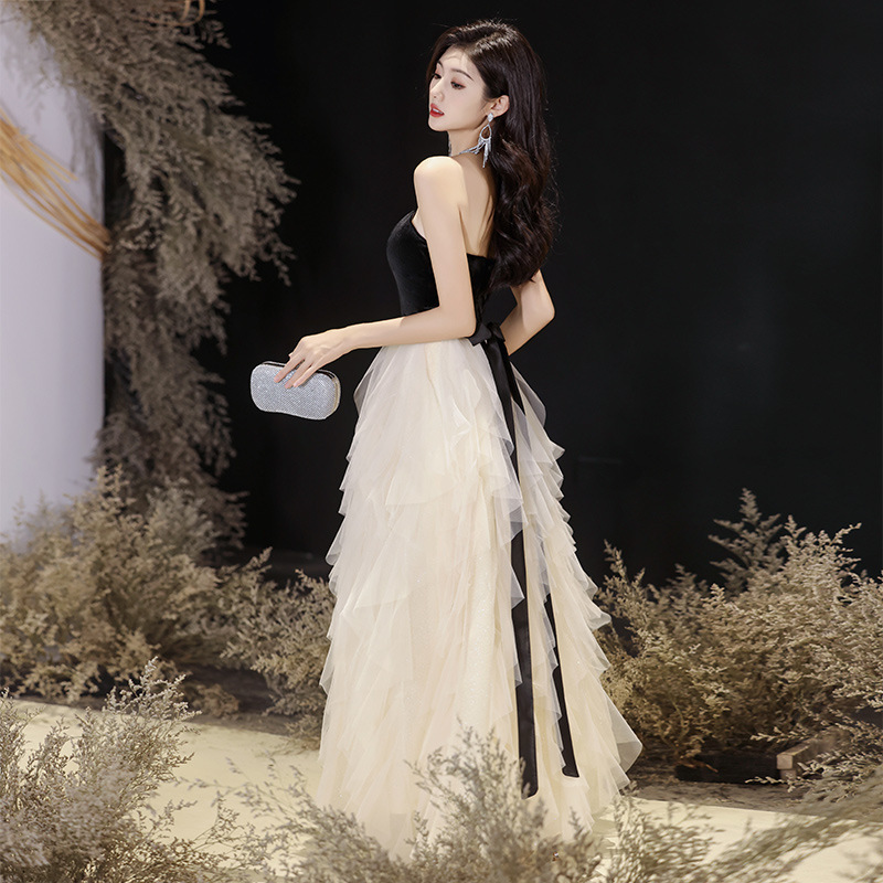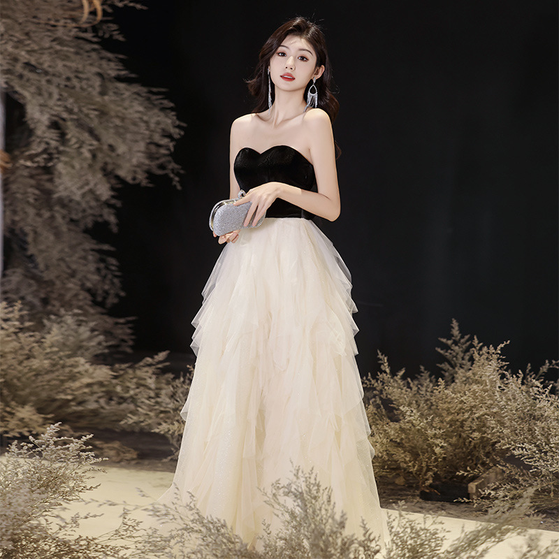 晚礼服高级感轻奢名媛生日party年会拼接网纱抹胸艺考连衣裙宴会