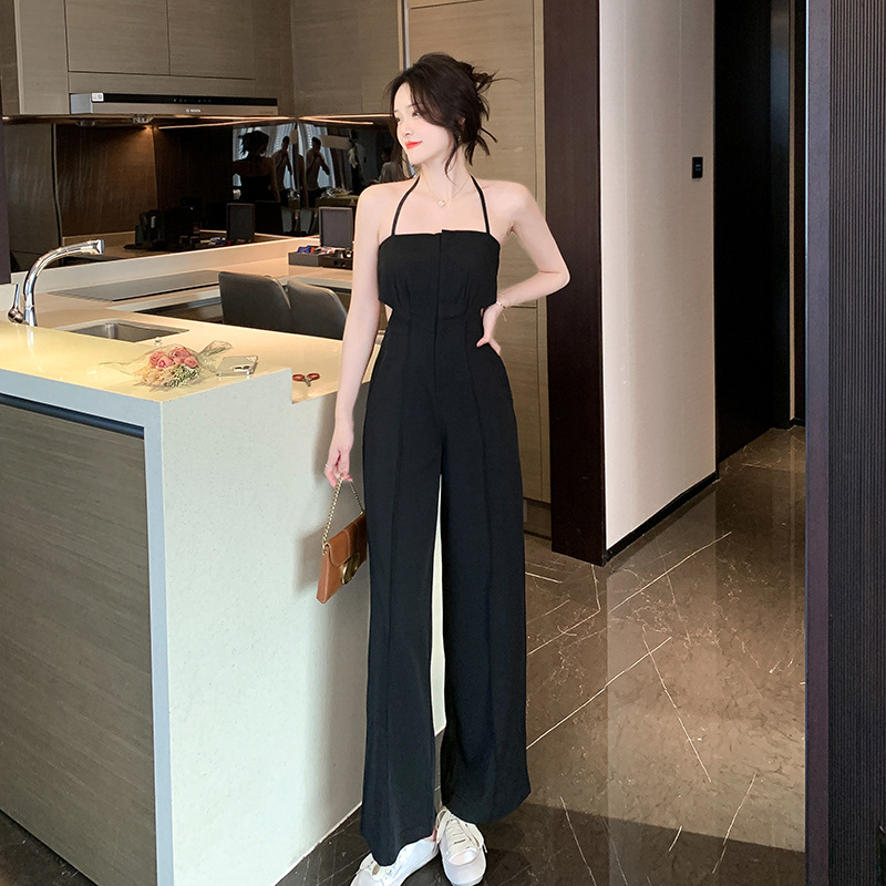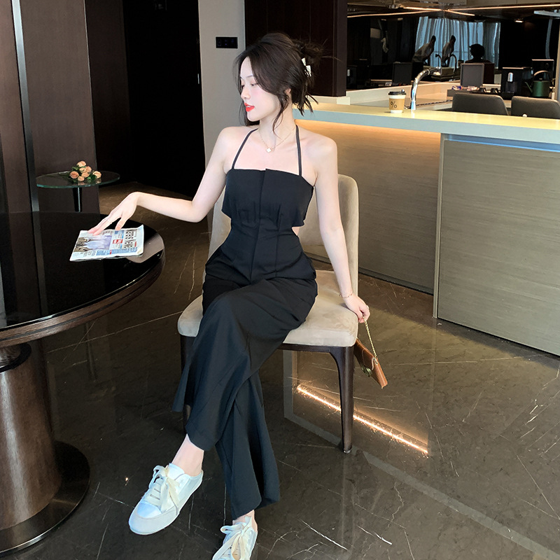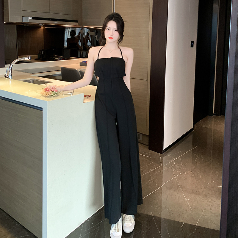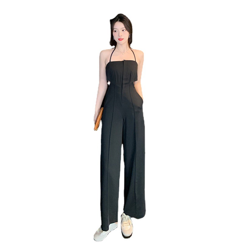纯欲风吊带连体裤超修身阔腿裤长裤高腰简约优雅气质裤子