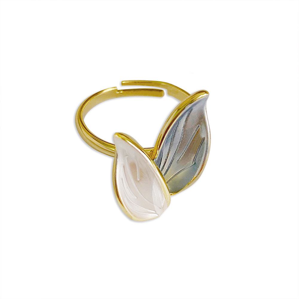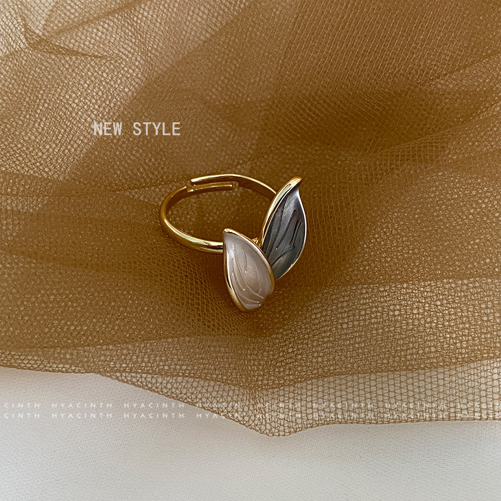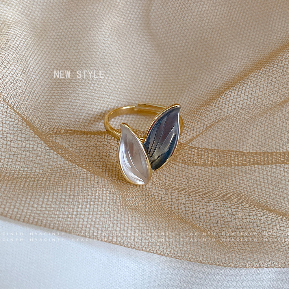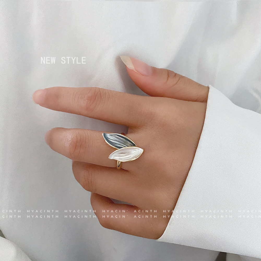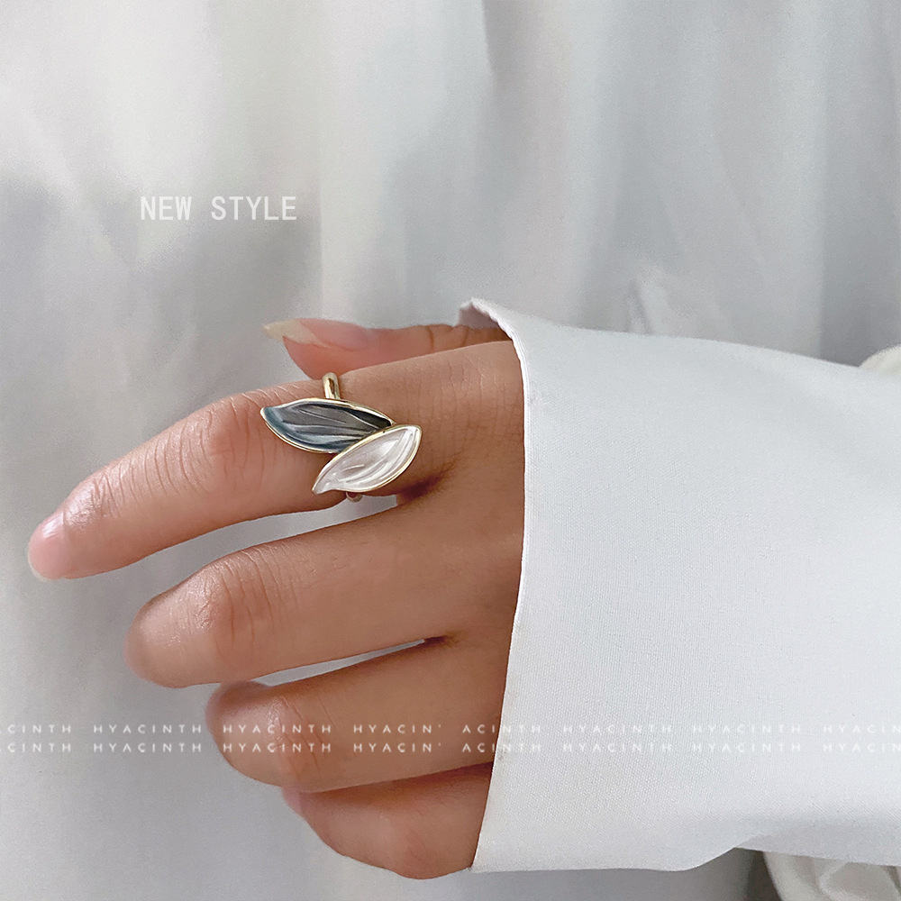 韩国气质高级感树叶戒指法式复古风一抹蓝ins少女心涂油指环手饰