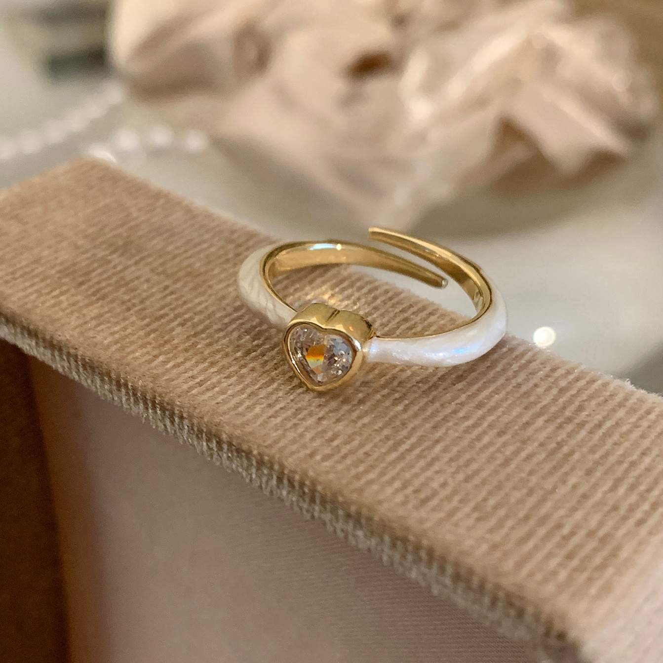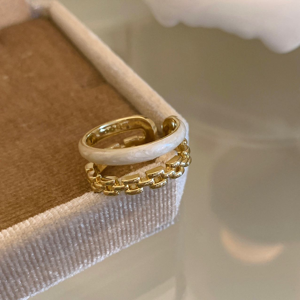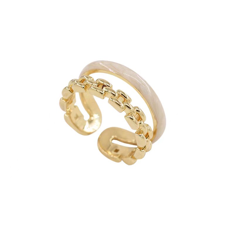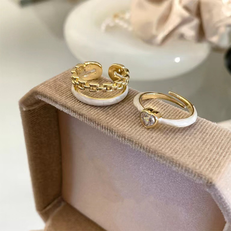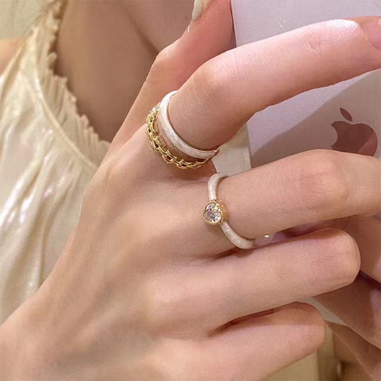 韩国ins气质高级感滴釉双层爱心戒指女轻奢小众设计叠带食指戒