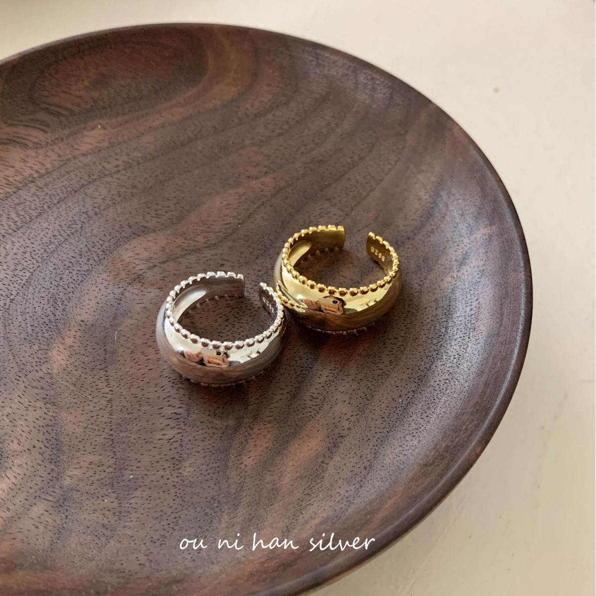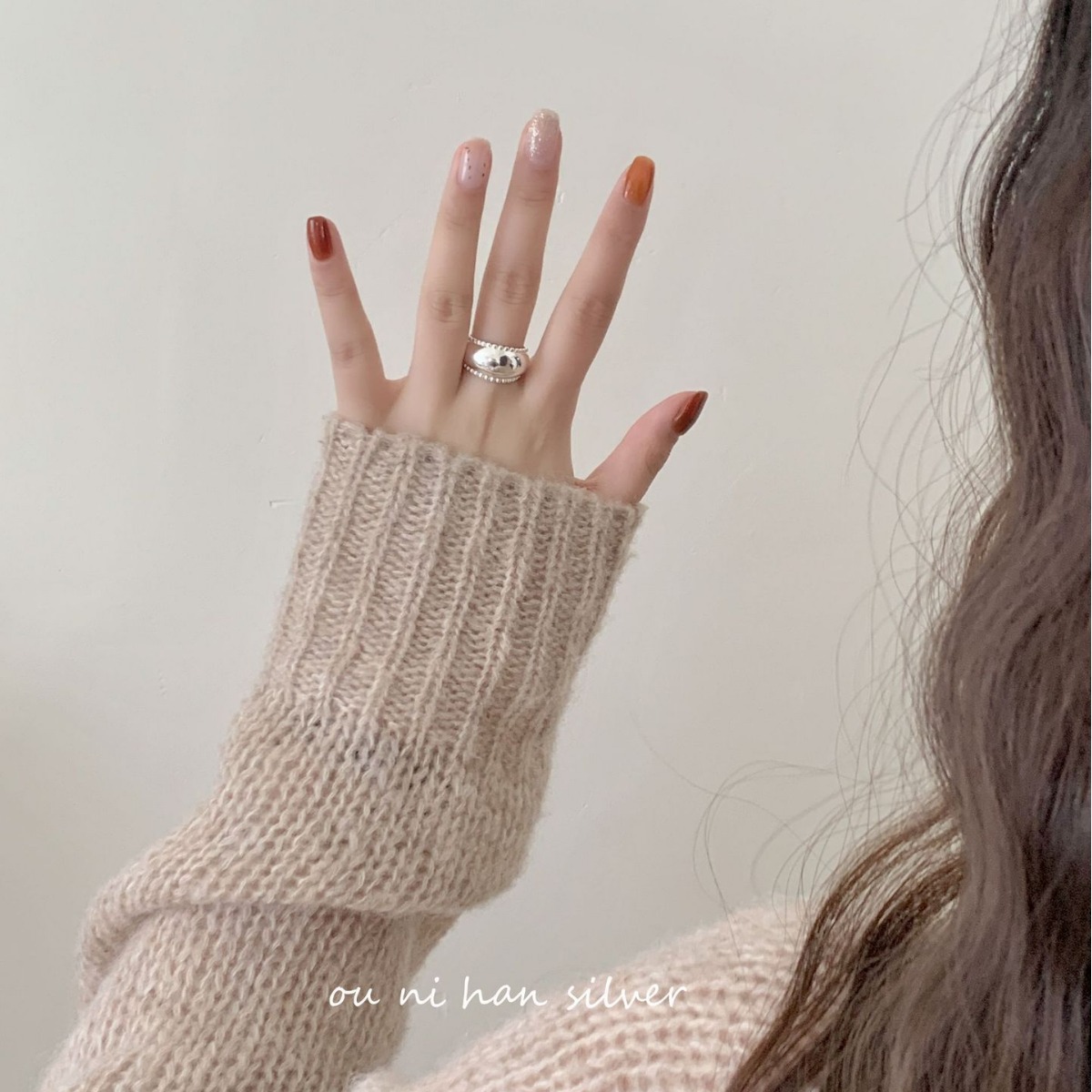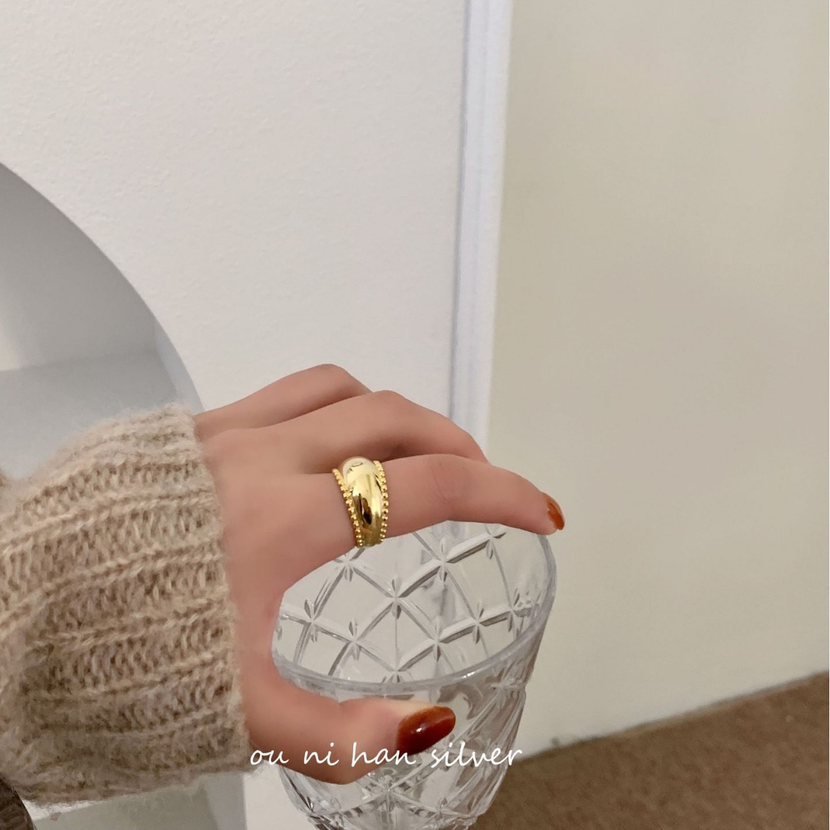 欧尼 韩国年新款潮小众设计宽版光面高级感戒指女ins风食指戒