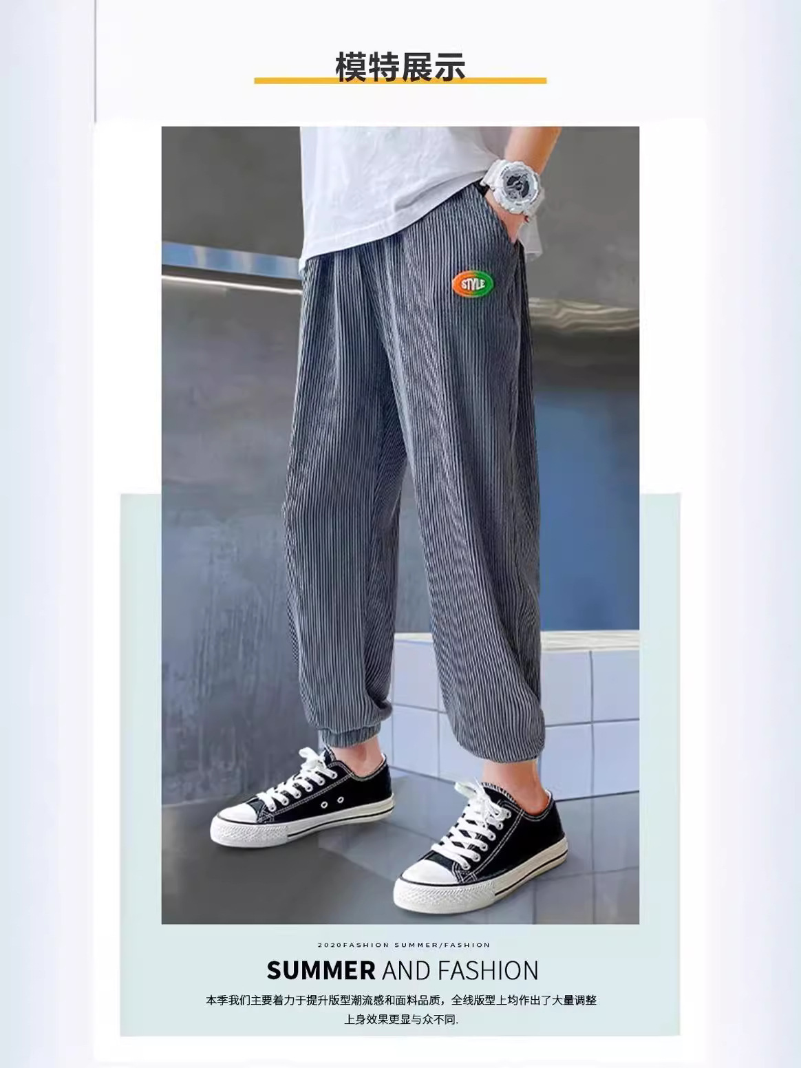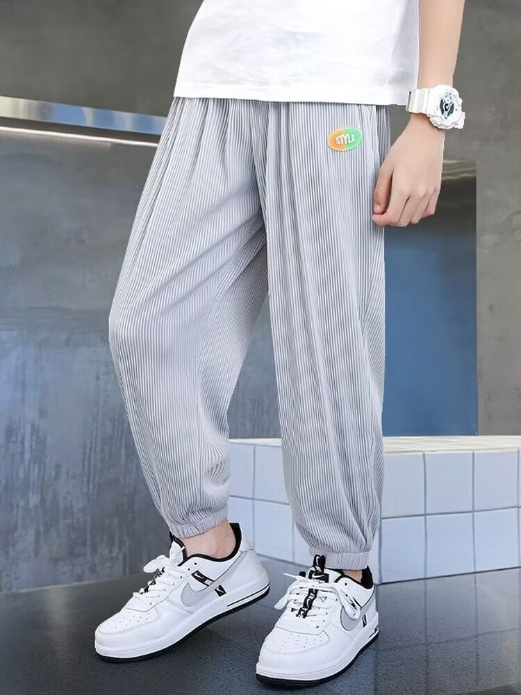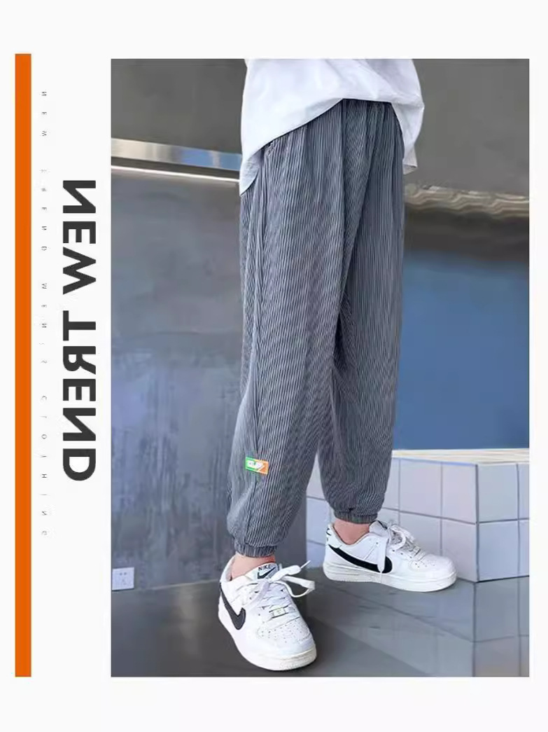夏季男童长裤新款儿童冰丝罗纹防蚊裤中大童薄款休闲运动裤子