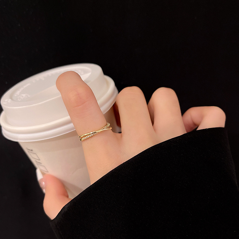 韩国素圈交叉戒指女小众设计轻奢开口食指高级感冷淡风指环尾戒