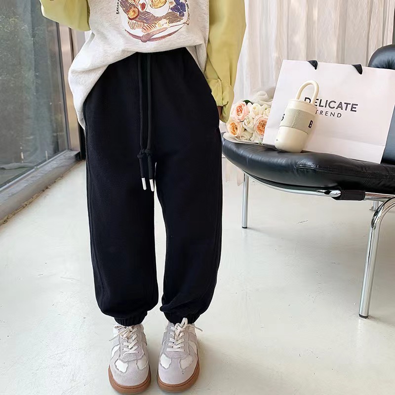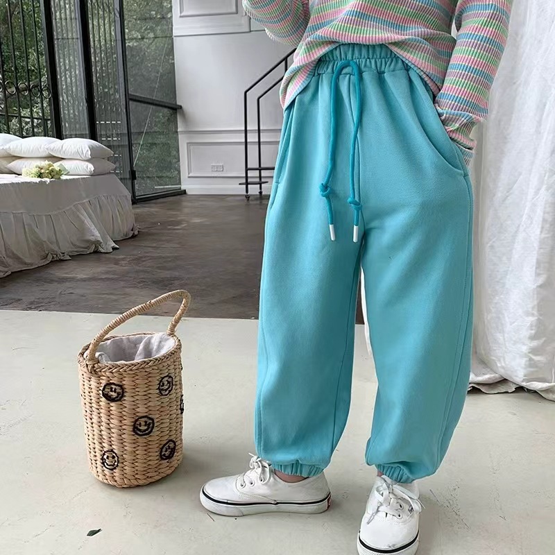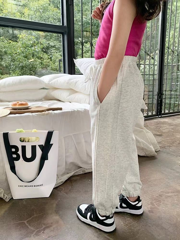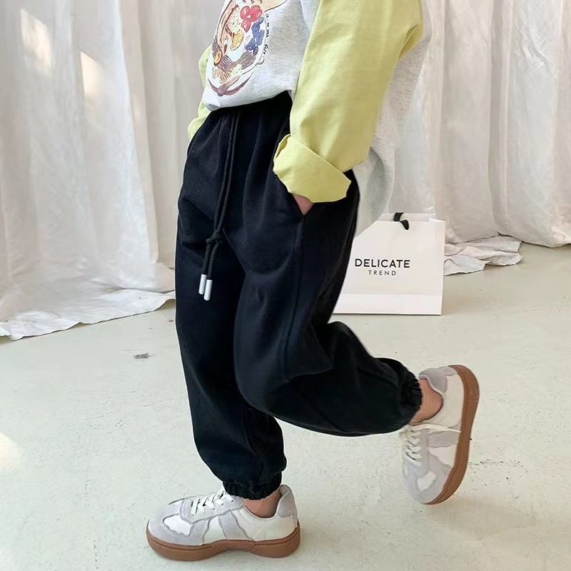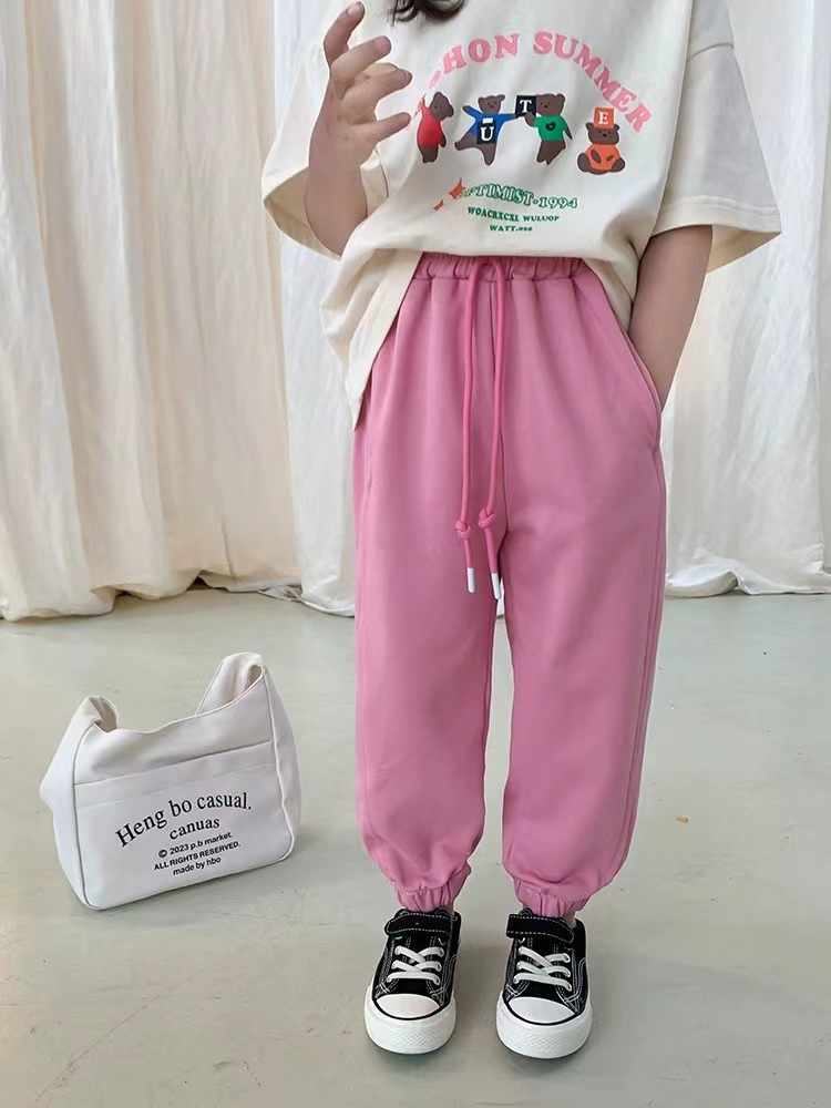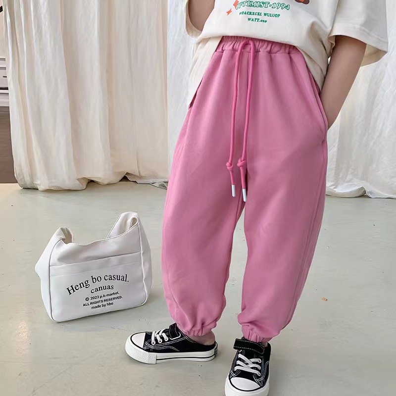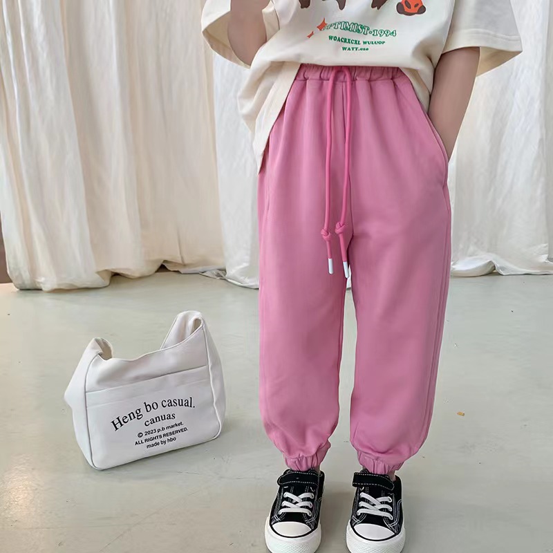 儿童休闲裤春季新款运动裤男女童纯色百搭卫裤韩版束脚长裤潮