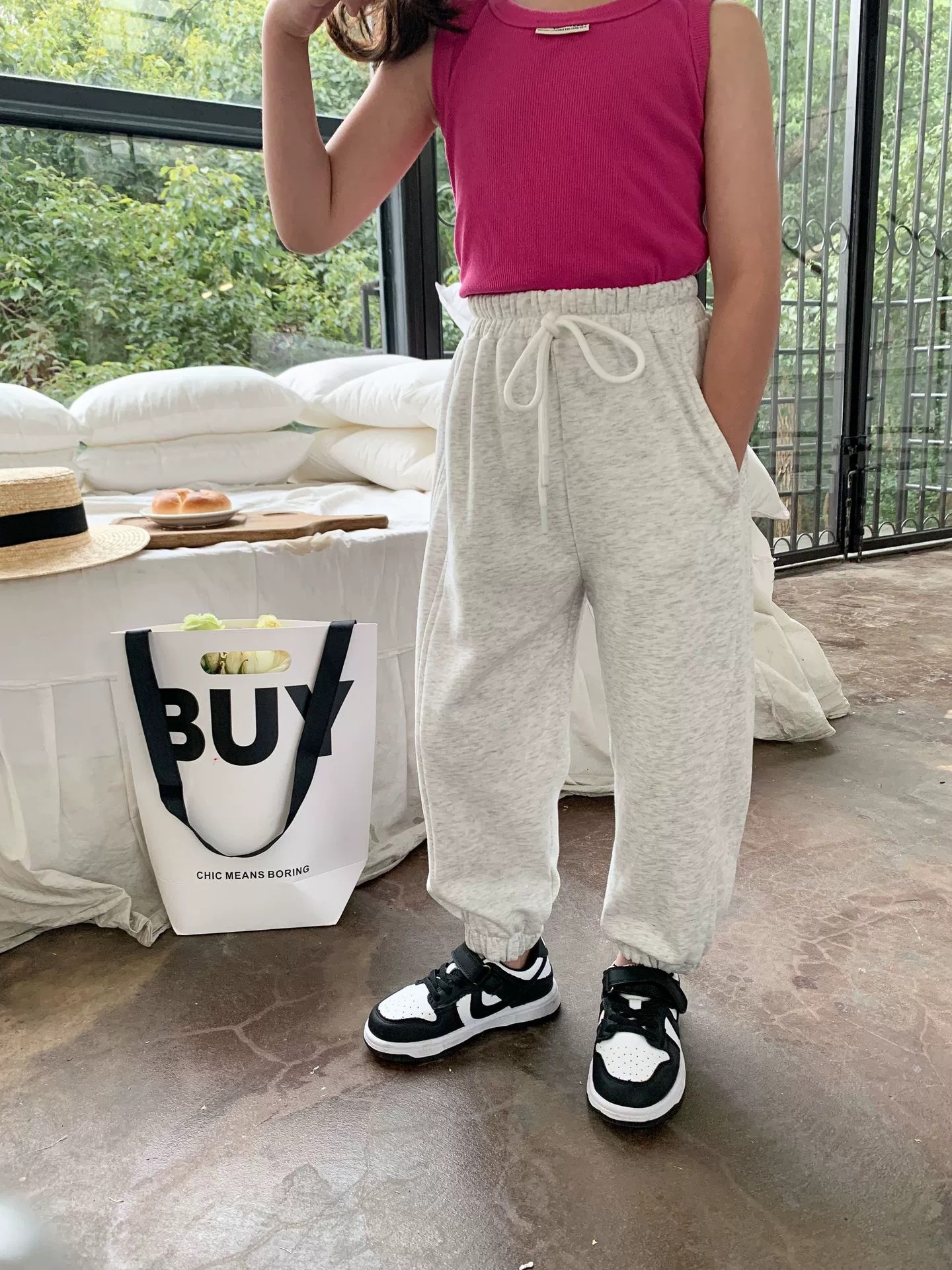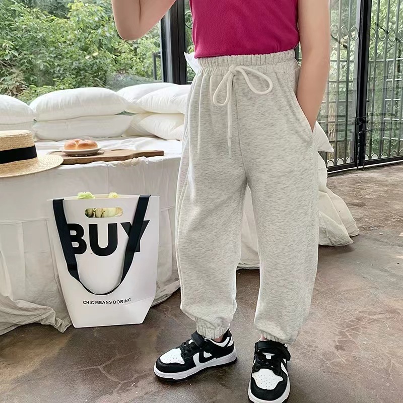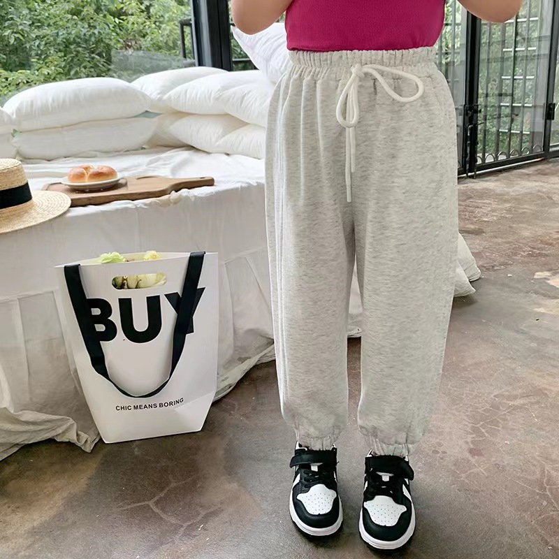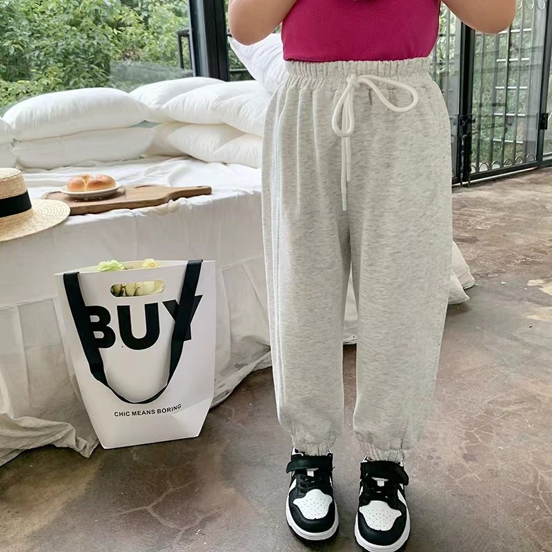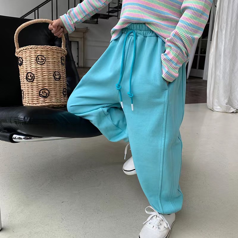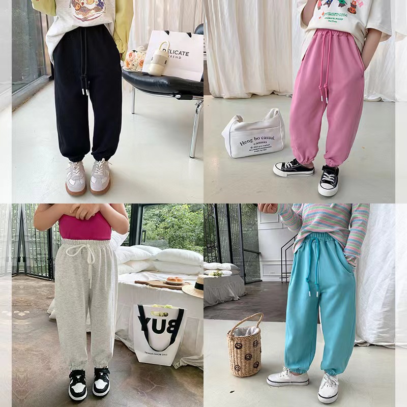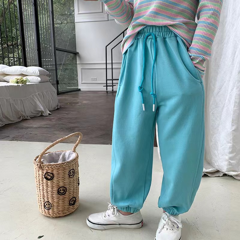 儿童休闲裤春季新款运动裤男女童纯色百搭卫裤韩版束脚长裤潮