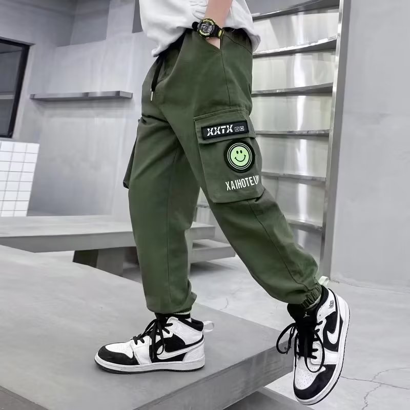 男童纯棉工装裤春秋新款年儿童束脚运动裤中大童宽松休闲裤潮