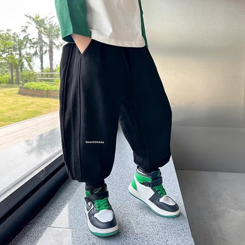港风ins休闲裤男童春夏潮牌拼接直筒束脚裤韩版宽松百搭童装卫裤