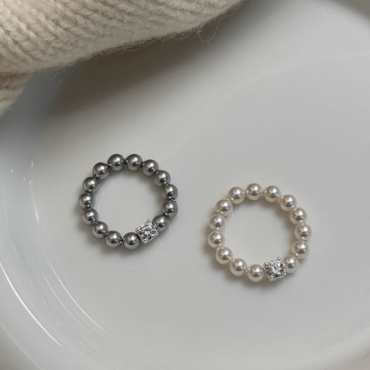 方糖奥地利施家珍珠弹力戒指小众设计女轻奢高级