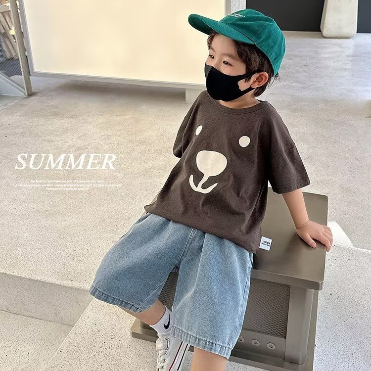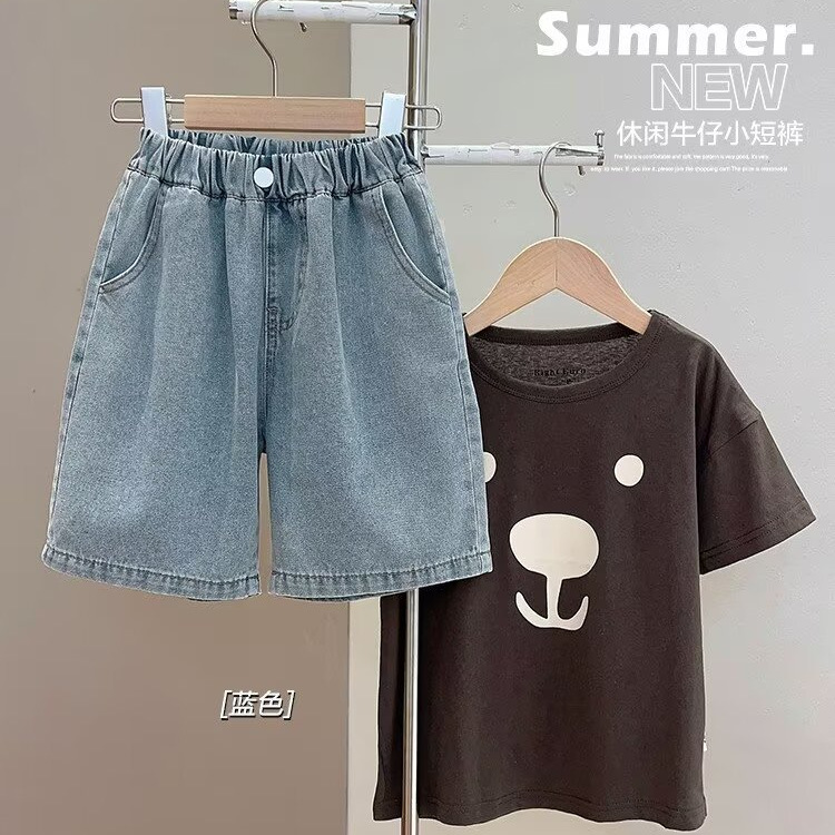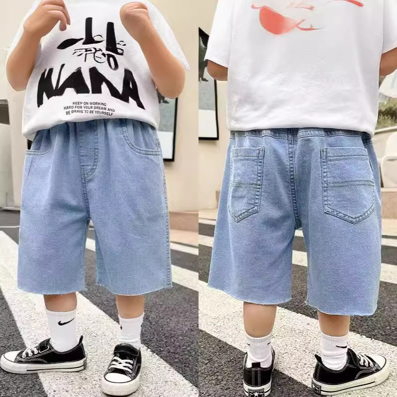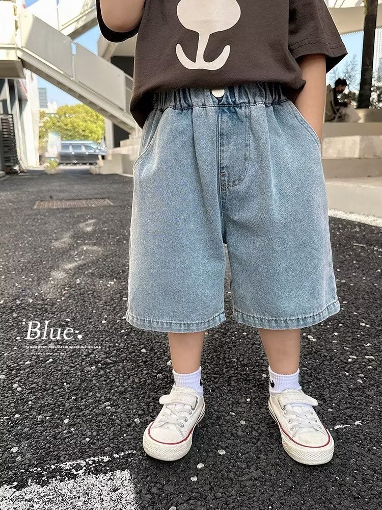 跨境男童夏季纯色牛仔裤新款儿童直筒宽松五分裤潮牌炸街短裤