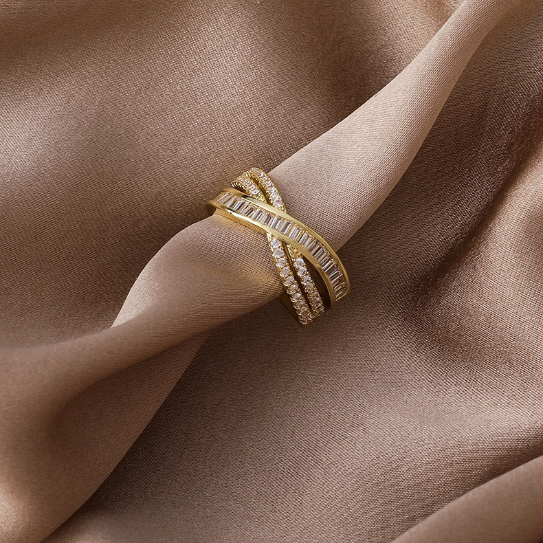 韩国交叉戒指女小众设计轻奢高级感ins潮锆石时尚个性冷淡风指环