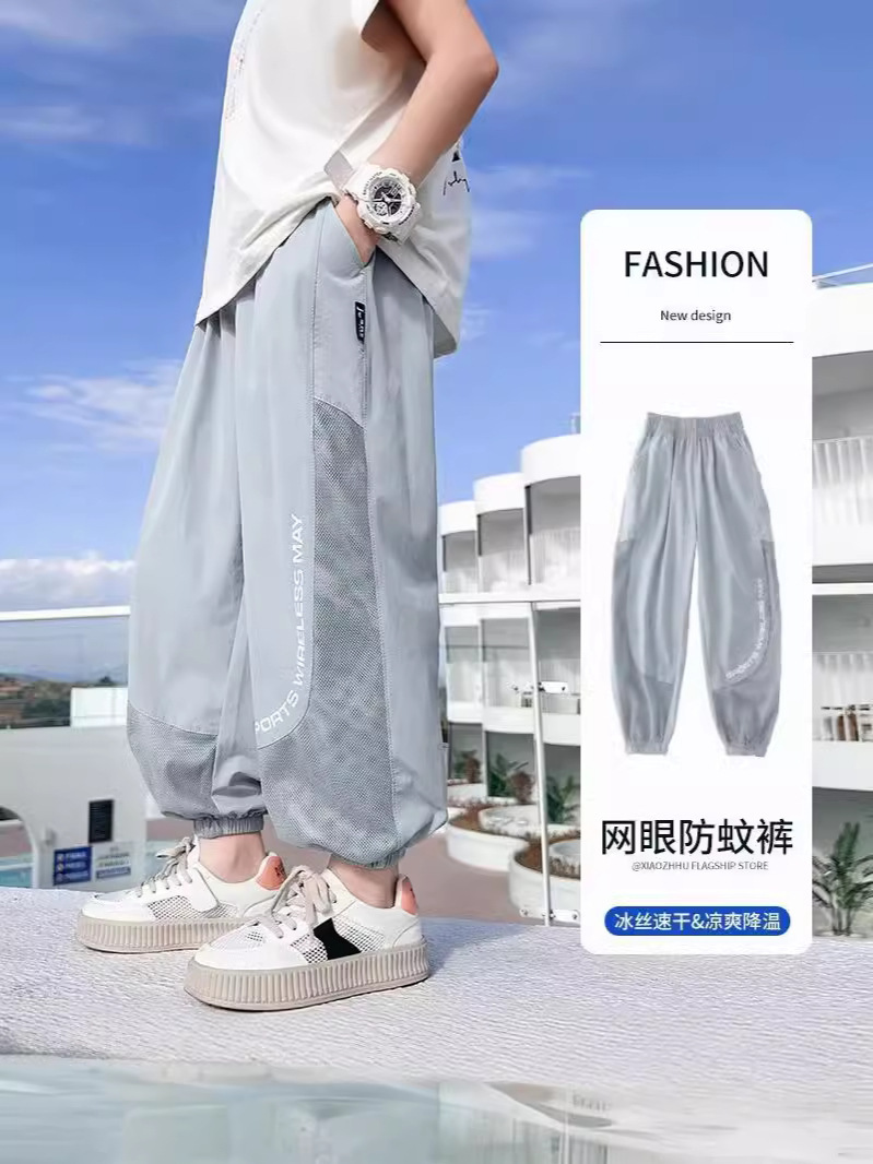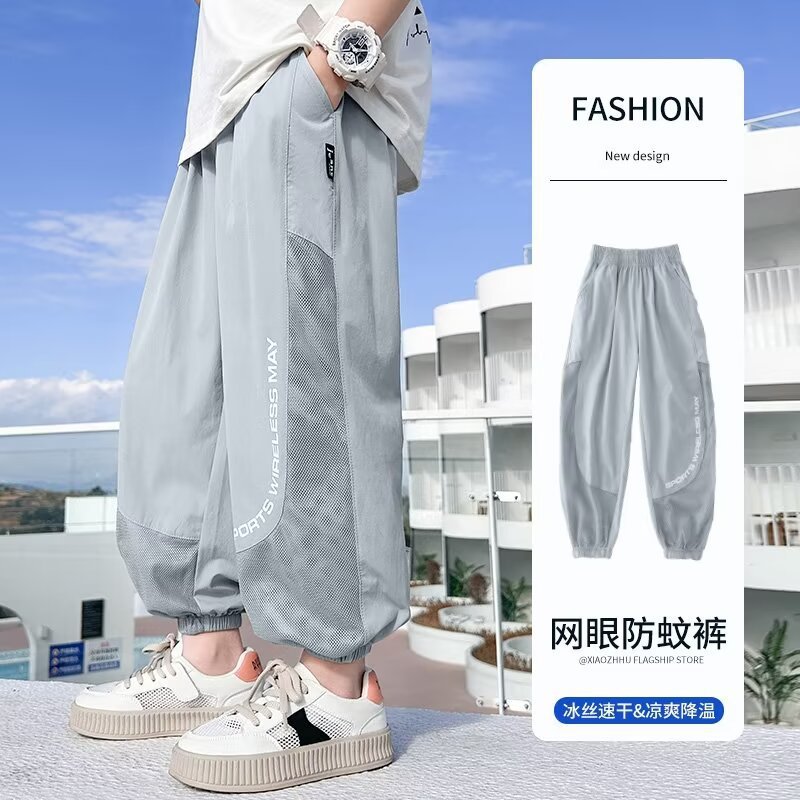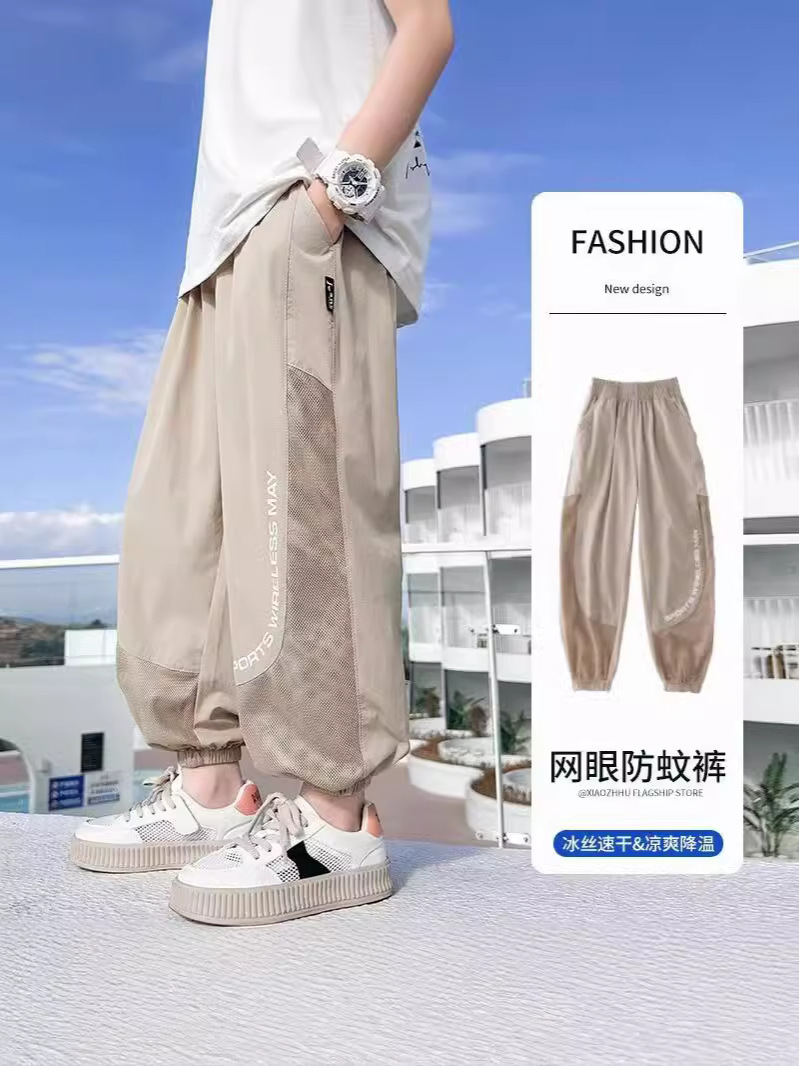 男童裤子夏季儿童冰丝凉感防蚊长裤新款大童运动裤男孩休闲裤