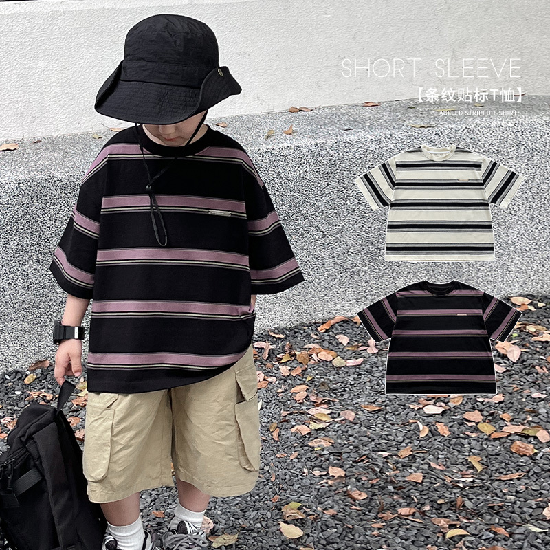 童酷男童夏装新品湖州织里童装韩版条纹贴标儿童短袖