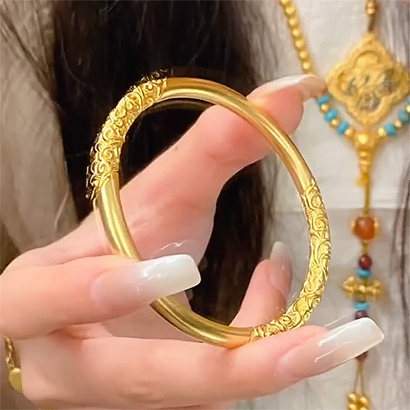 小红书同款新中式卷草纹磨砂质感手镯新款小众设计唐草纹手环