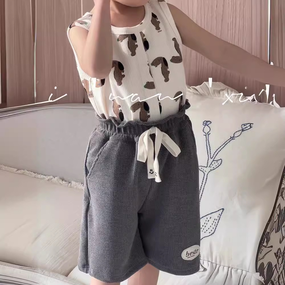 24夏款儿童短裤男女童针织中裤百慕大休闲渔夫裤3-8岁宝宝五分裤