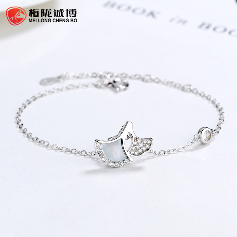 925纯银一贝子手链女韩版简约ins小众设计白贝母扇形手饰七夕礼物