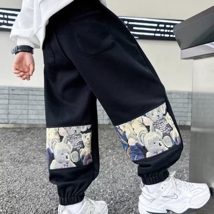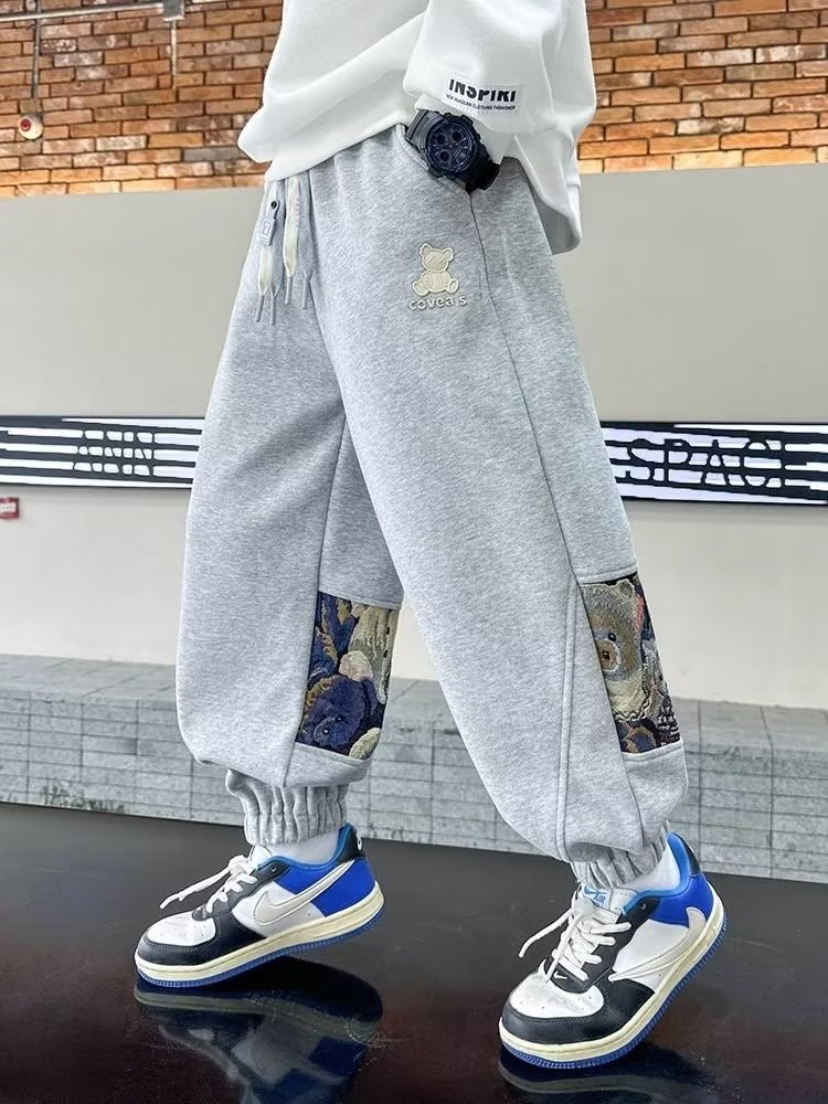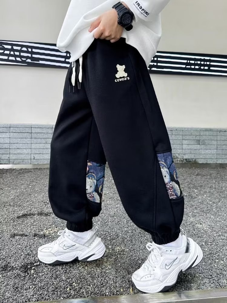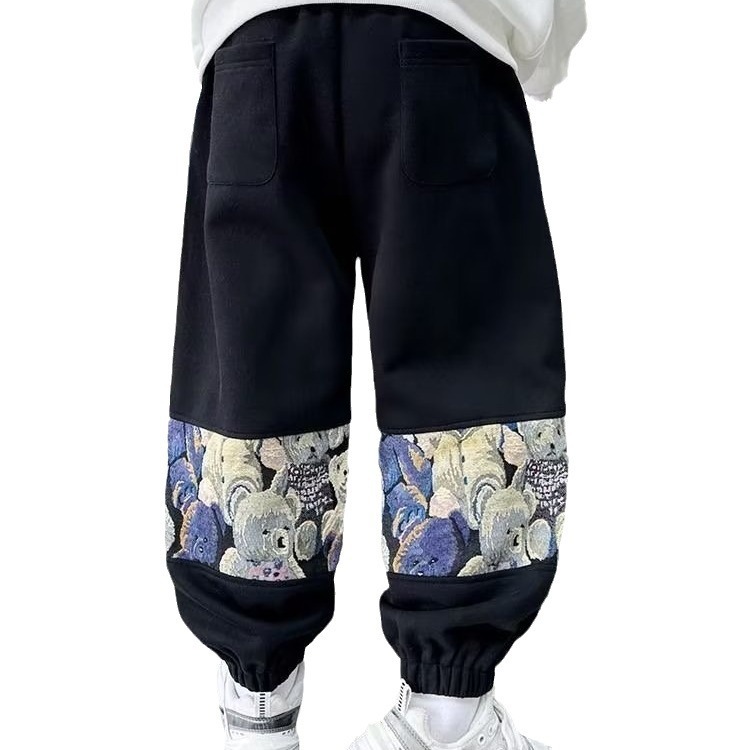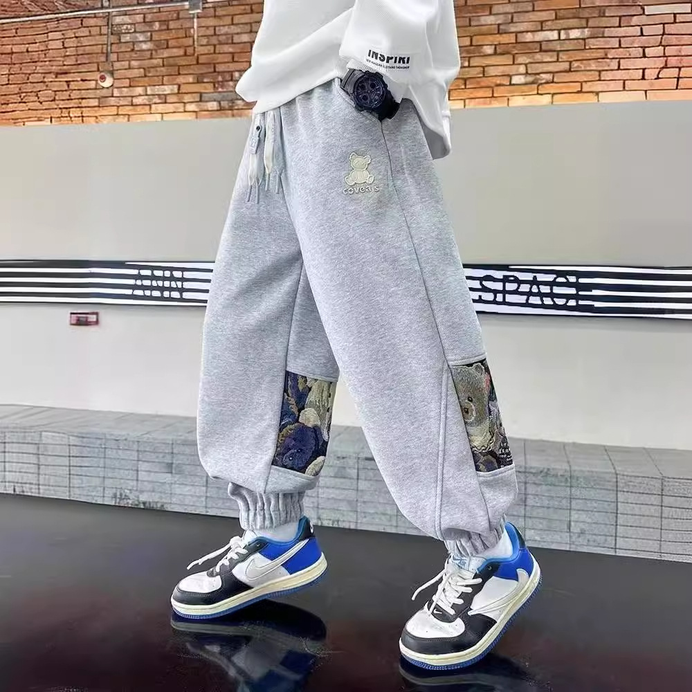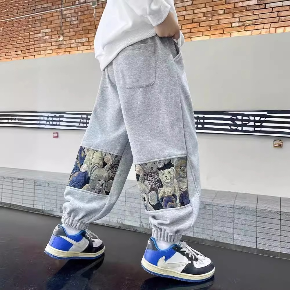 港风ins休闲裤男童春夏潮牌拼接直筒束脚裤韩版宽松百搭童装卫裤