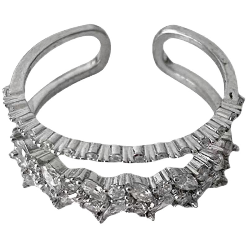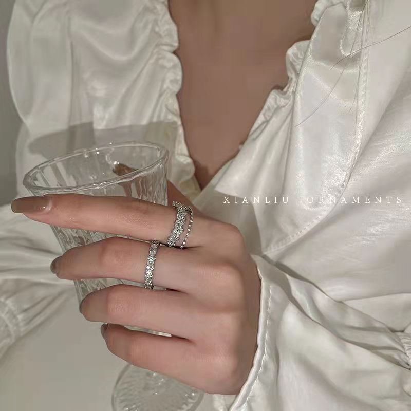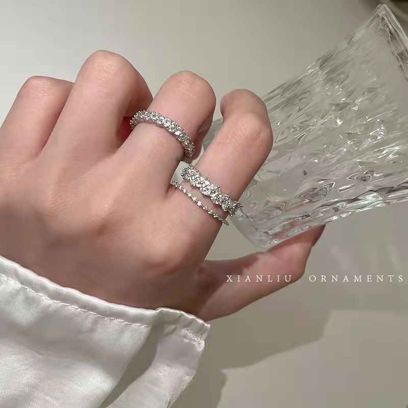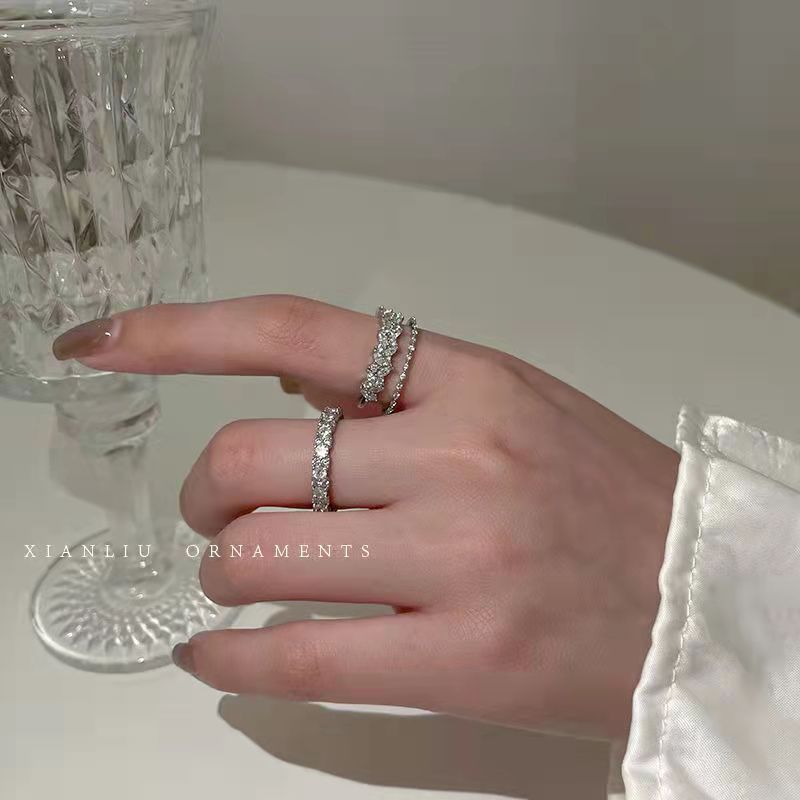 韩国超闪锆石双层水钻轻奢小众精致戒指女高级感ins潮时尚个性