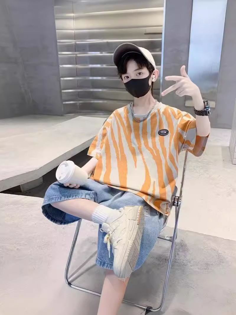 男童夏季短袖帅气童装满印卡通t袖半袖中大童炸街舒适上衣潮